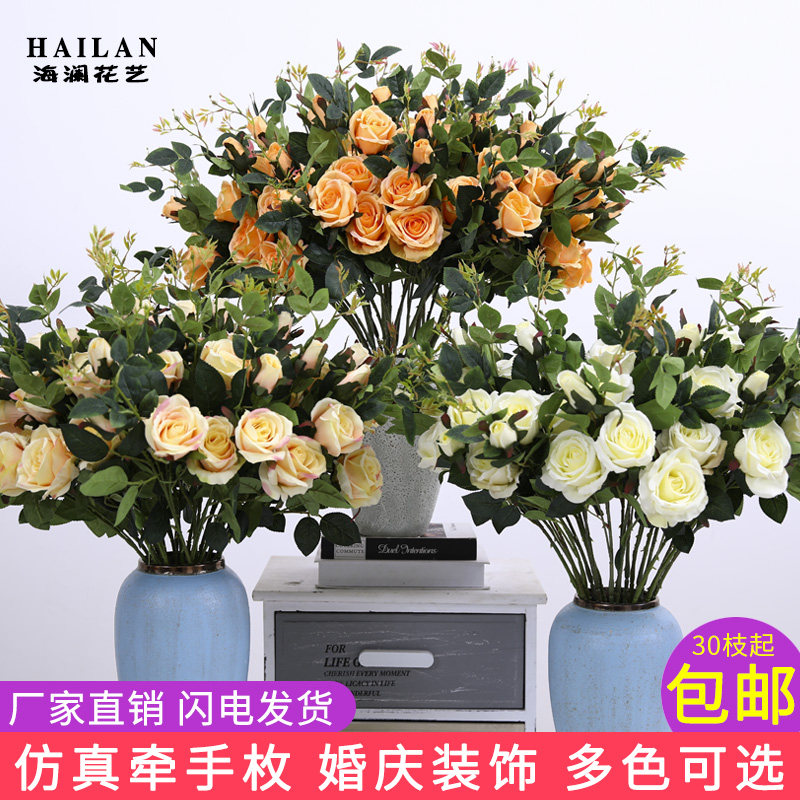 Сингл -бранч -симуляция роза Роза Роза Роуз чай слива дома цветочный художник свадебный аранжировка с рукой -окно шелковое окно с рукой