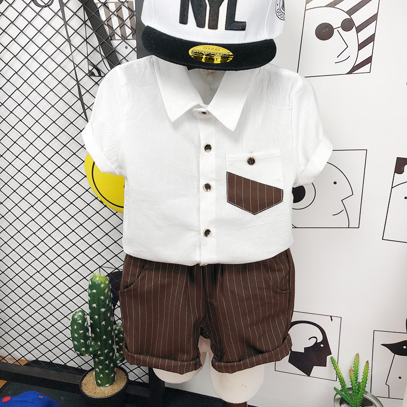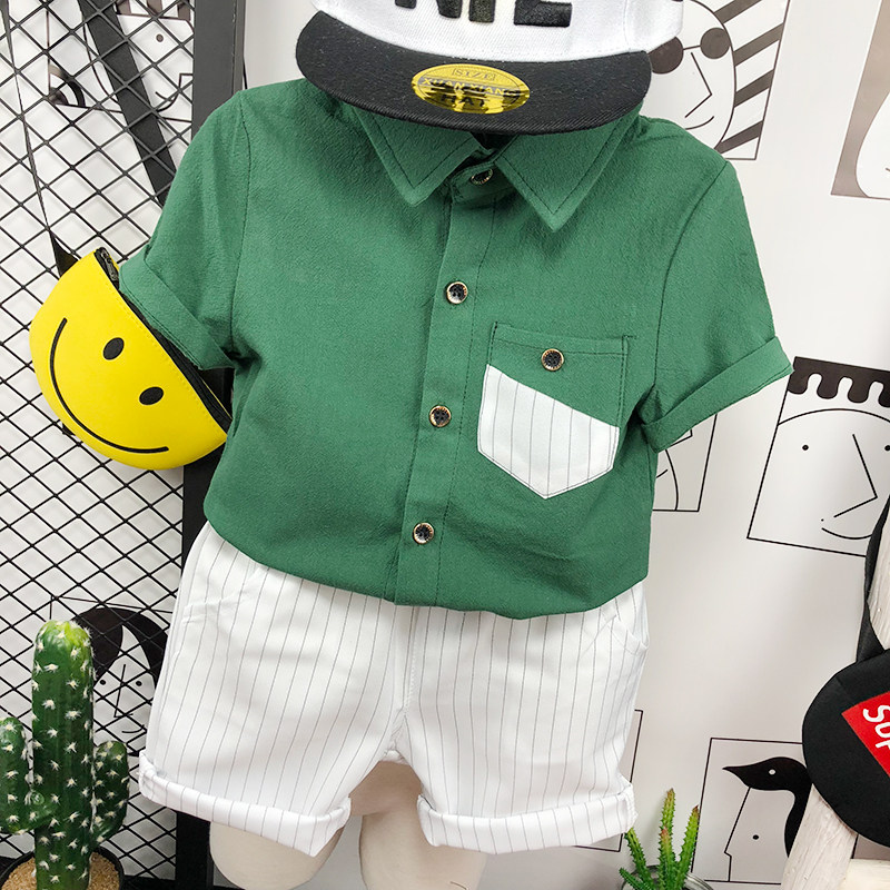 Летняя одежда, комплект, летняя рубашка для мальчиков, в корейском стиле