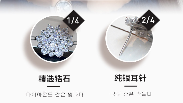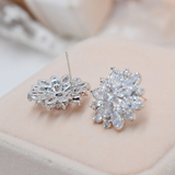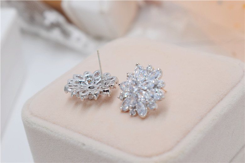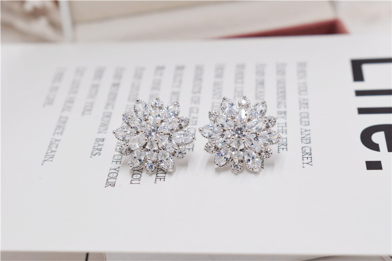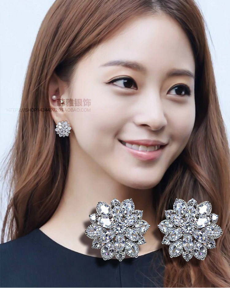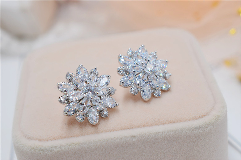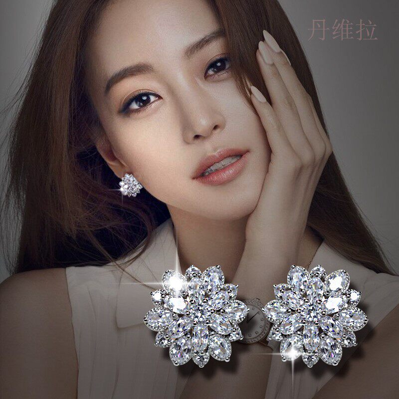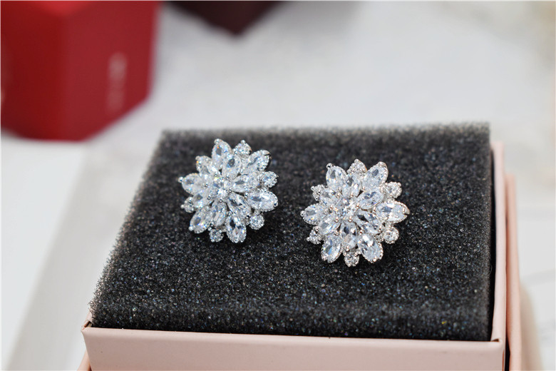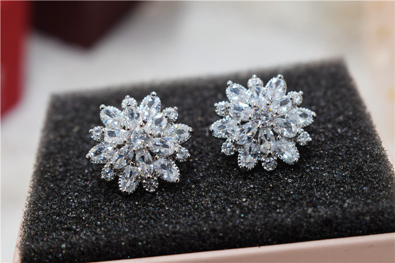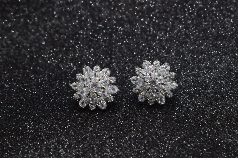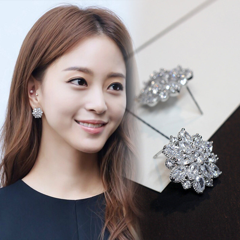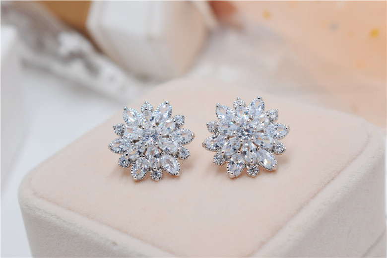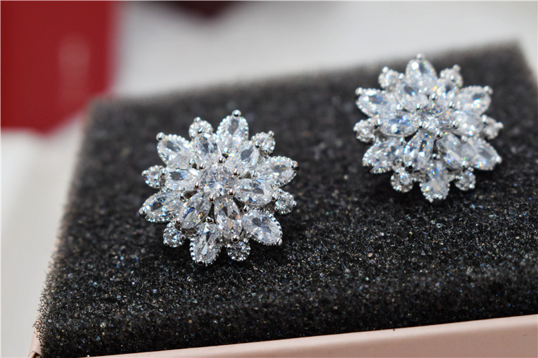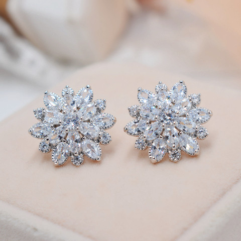 Гипоаллергенные серьги с цирконом, серебро 925 пробы, в цветочек, инкрустировано бриллиантами, серебро 925 пробы