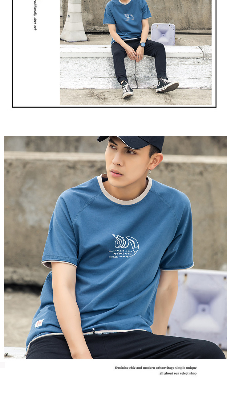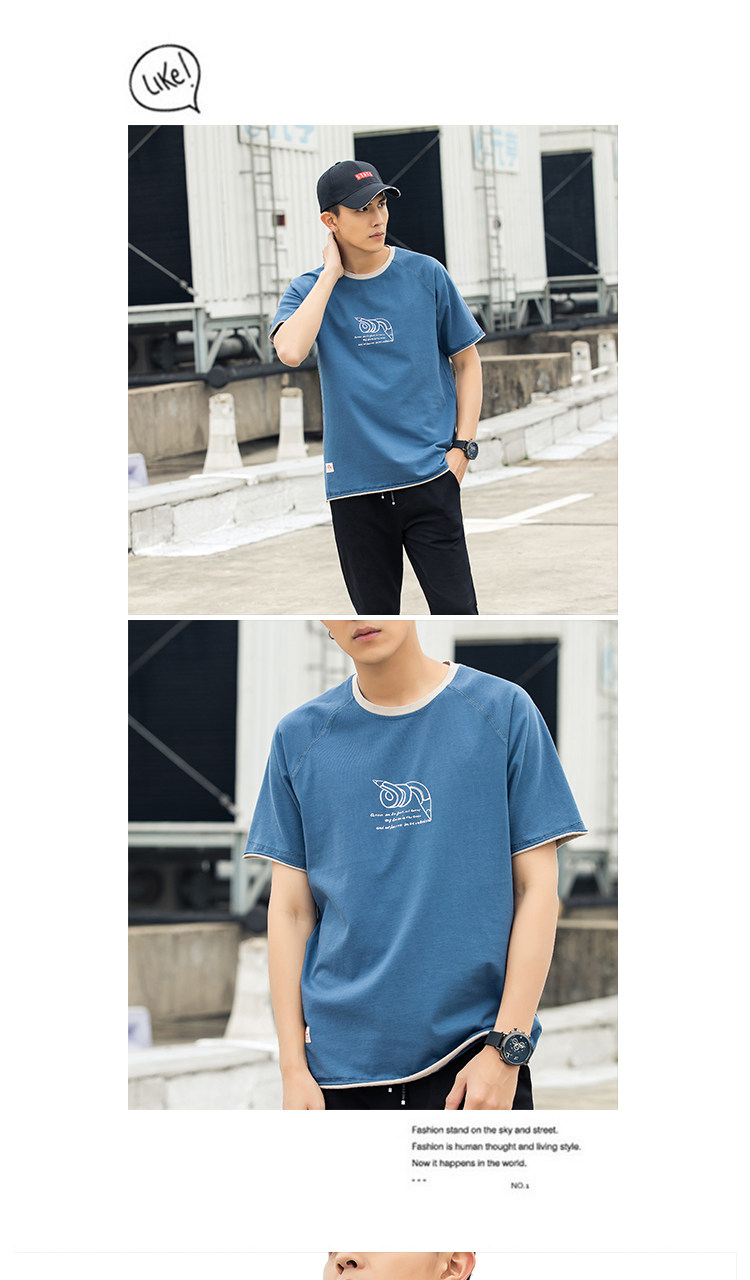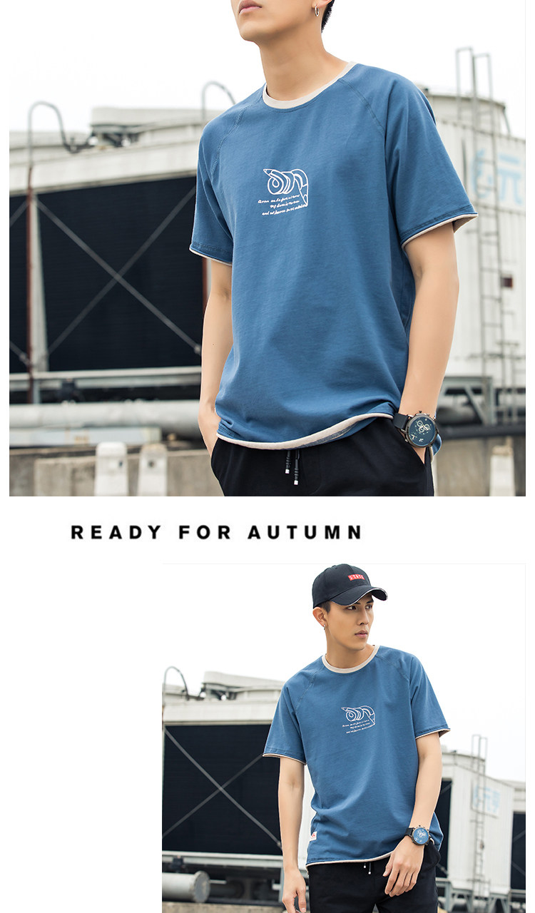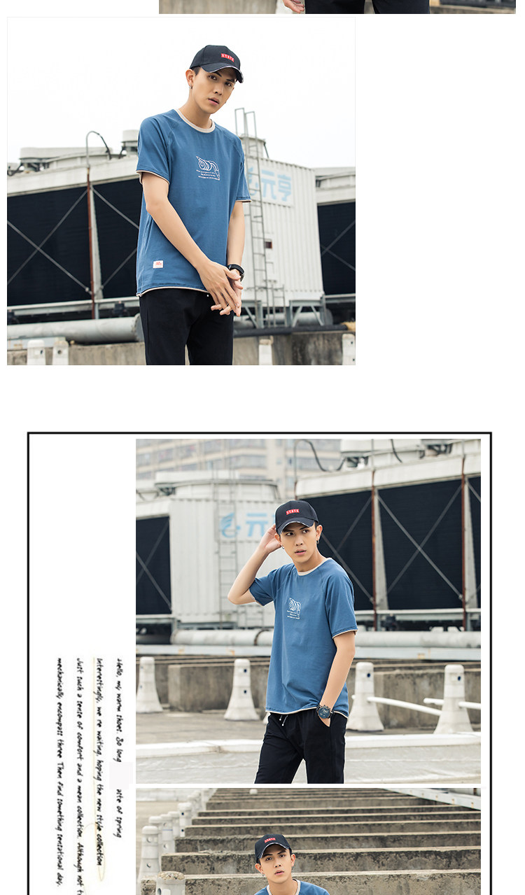 Японский хлопковый синий комплект, летняя футболка, короткий рукав, оверсайз, коллекция 2021