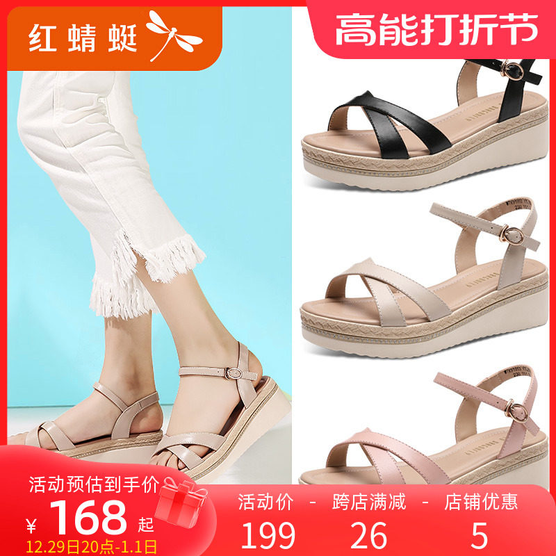 Летние высокие сандалии на платформе для отдыха, обувь, из натуральной кожи