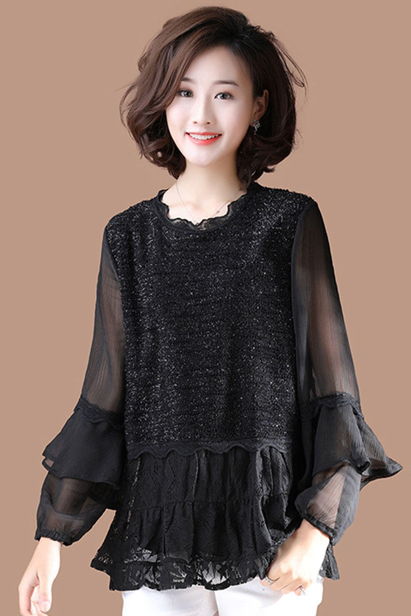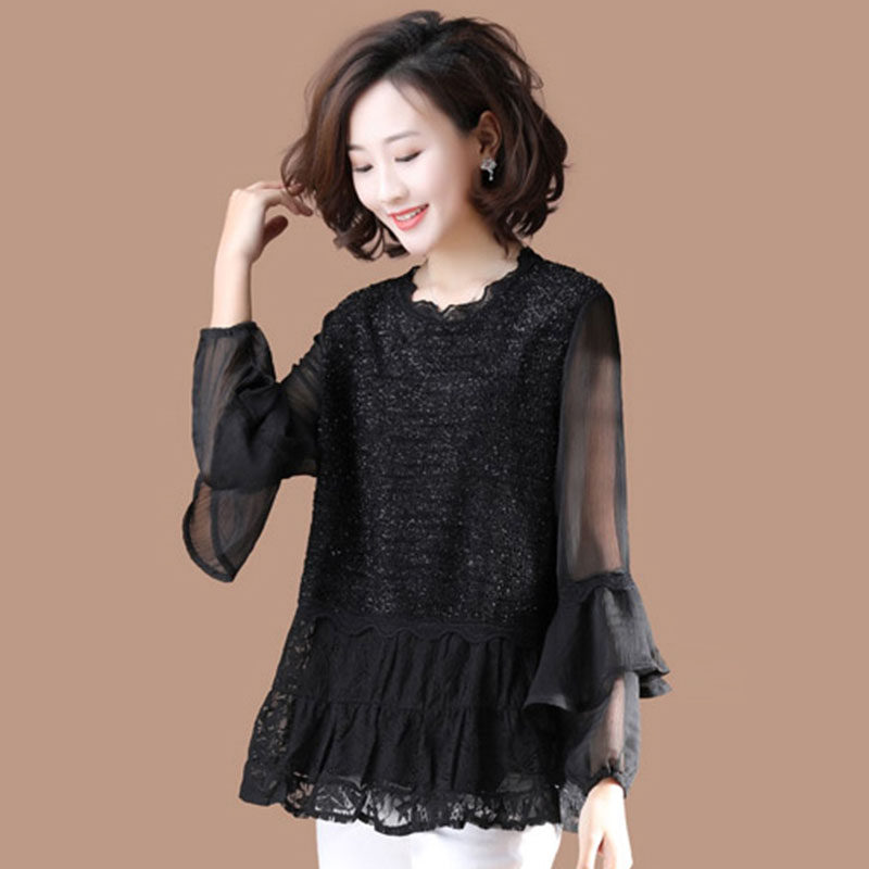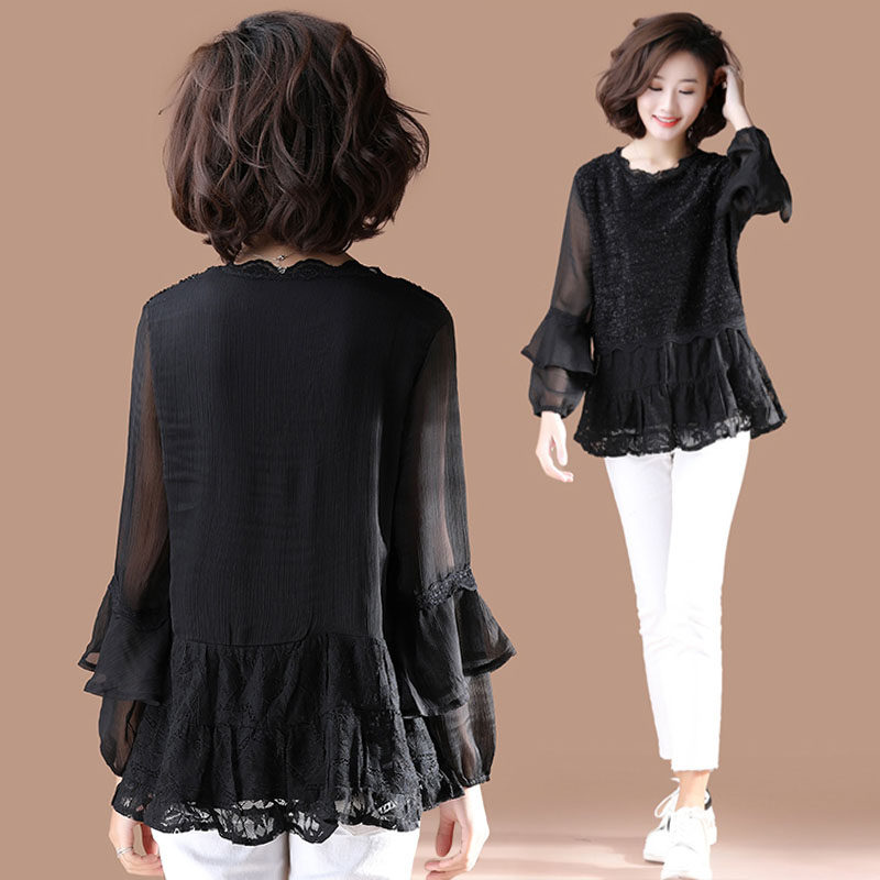 Весенний кружевной шифоновый лонгслив, большой размер, свободный крой, в западном стиле, коллекция 2021