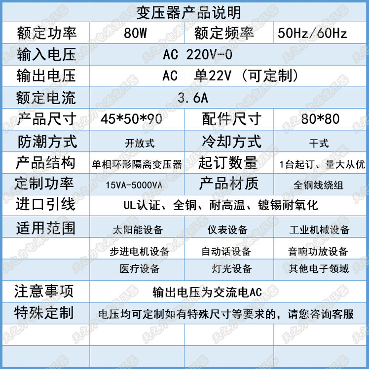 Медный трансформатор, 80W, 220v, 6v, 9v, 12v, 15v, 18v, 21v, 24v, 28v, делается под заказ