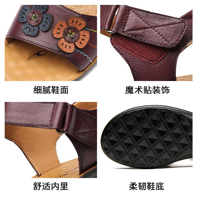 Летние комфортные кожаные сандалии для матери, обувь, сезон 2021, из натуральной кожи, воловья кожа