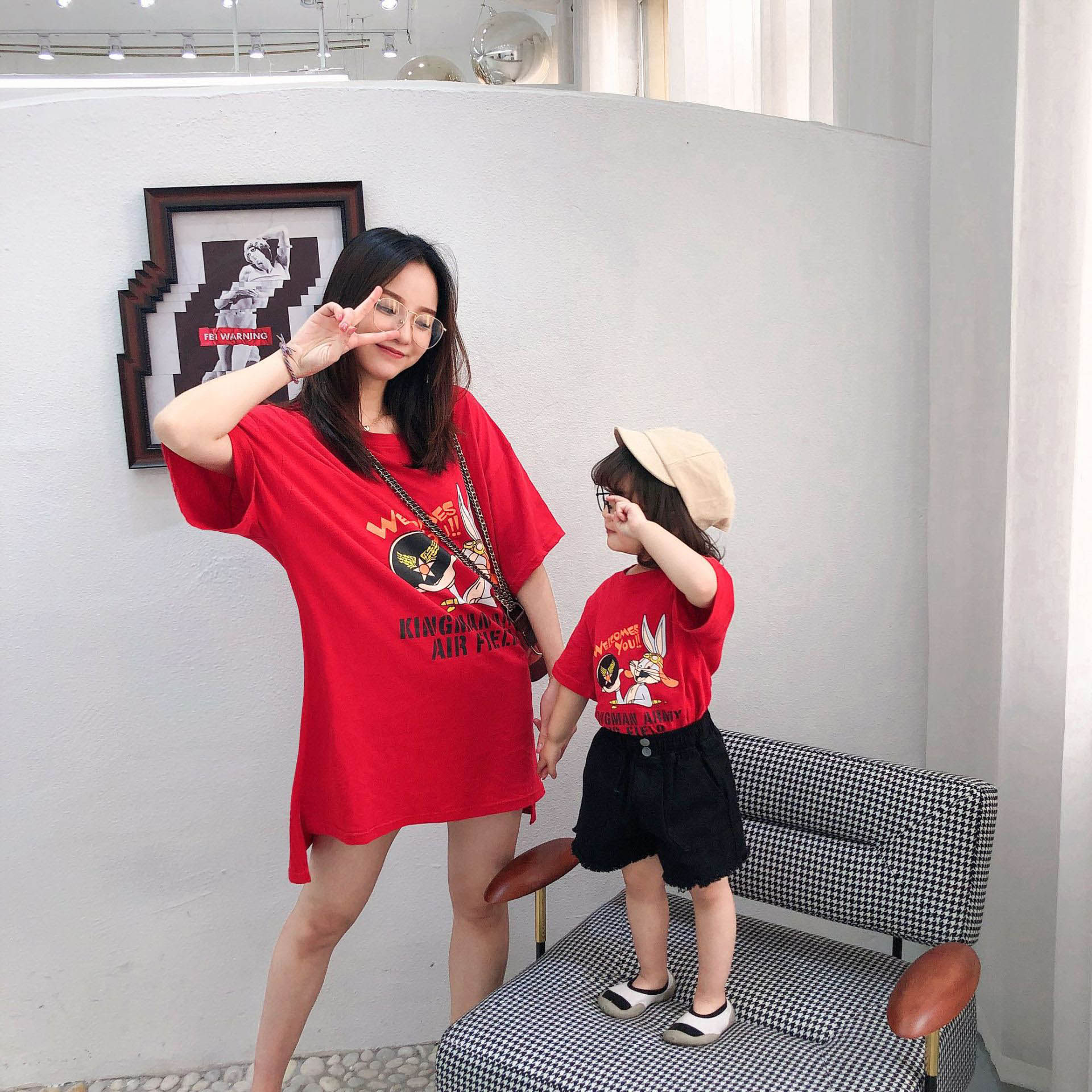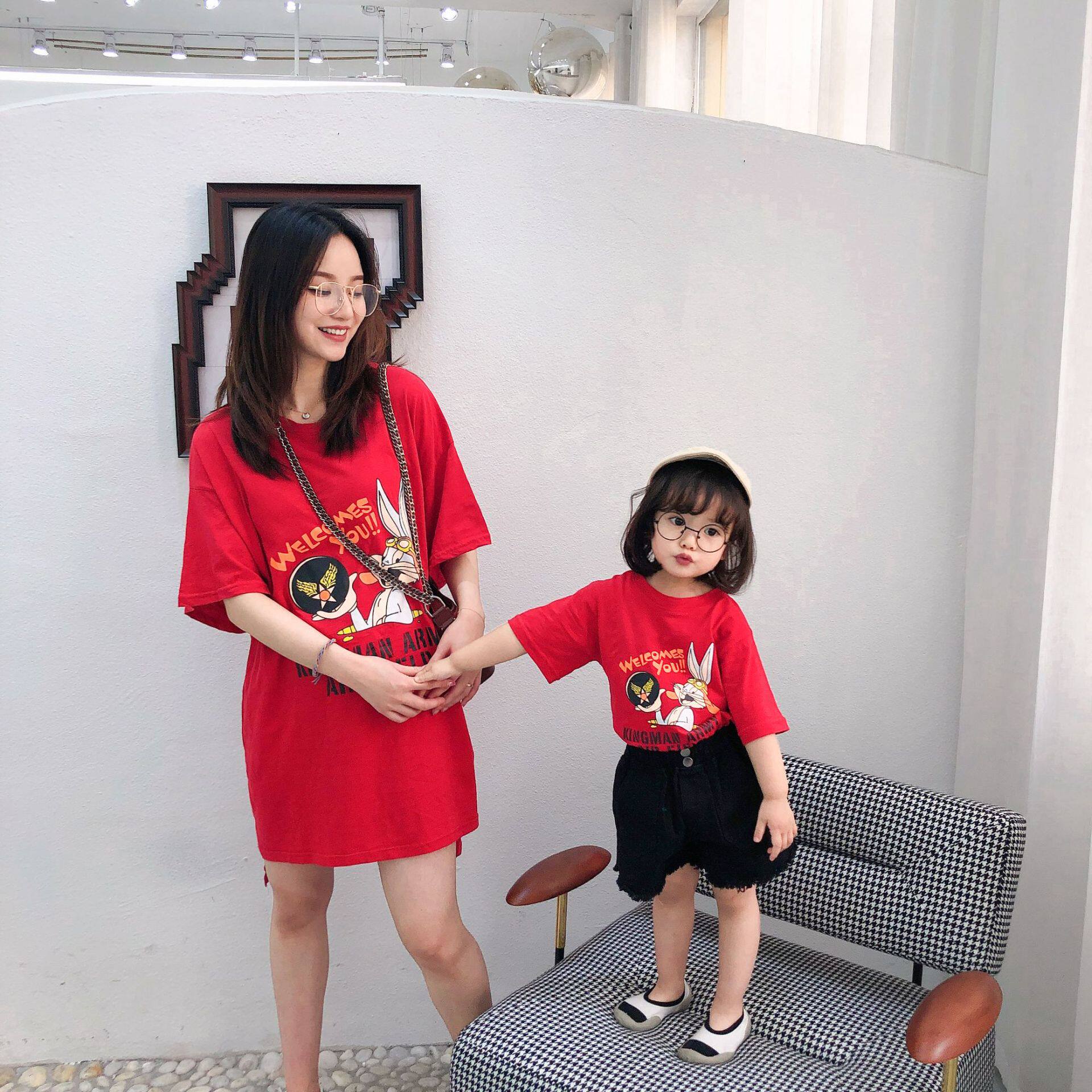 Летняя одежда, весенняя футболка с коротким рукавом, семейный стиль, в западном стиле, 2019