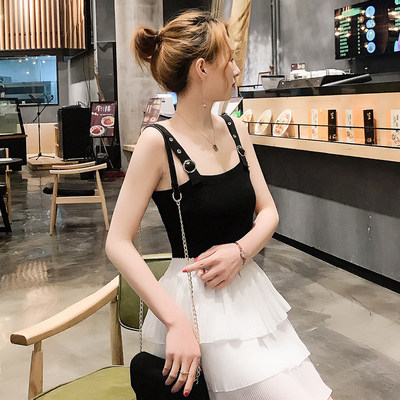 Летний сексуальный белый трикотажный топ с чашечками, черная базовая приятная телу майка топ, сезон 2021, в корейском стиле, для маленькой груди