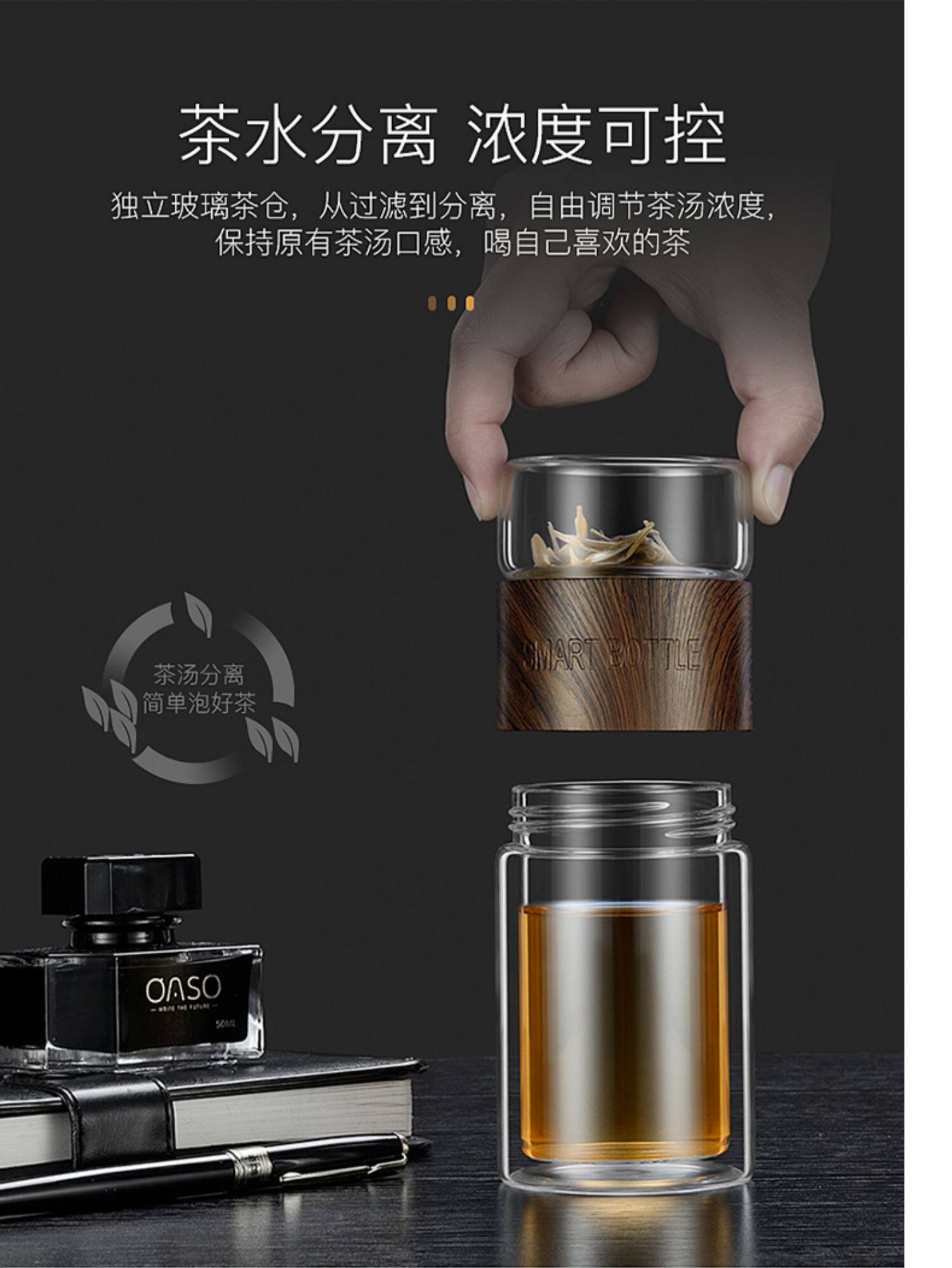 绿珠 Чайная чашка подходит для мужчин и женщин, стеклянный портативный чай для путешествий, чайный сервиз, фильтр