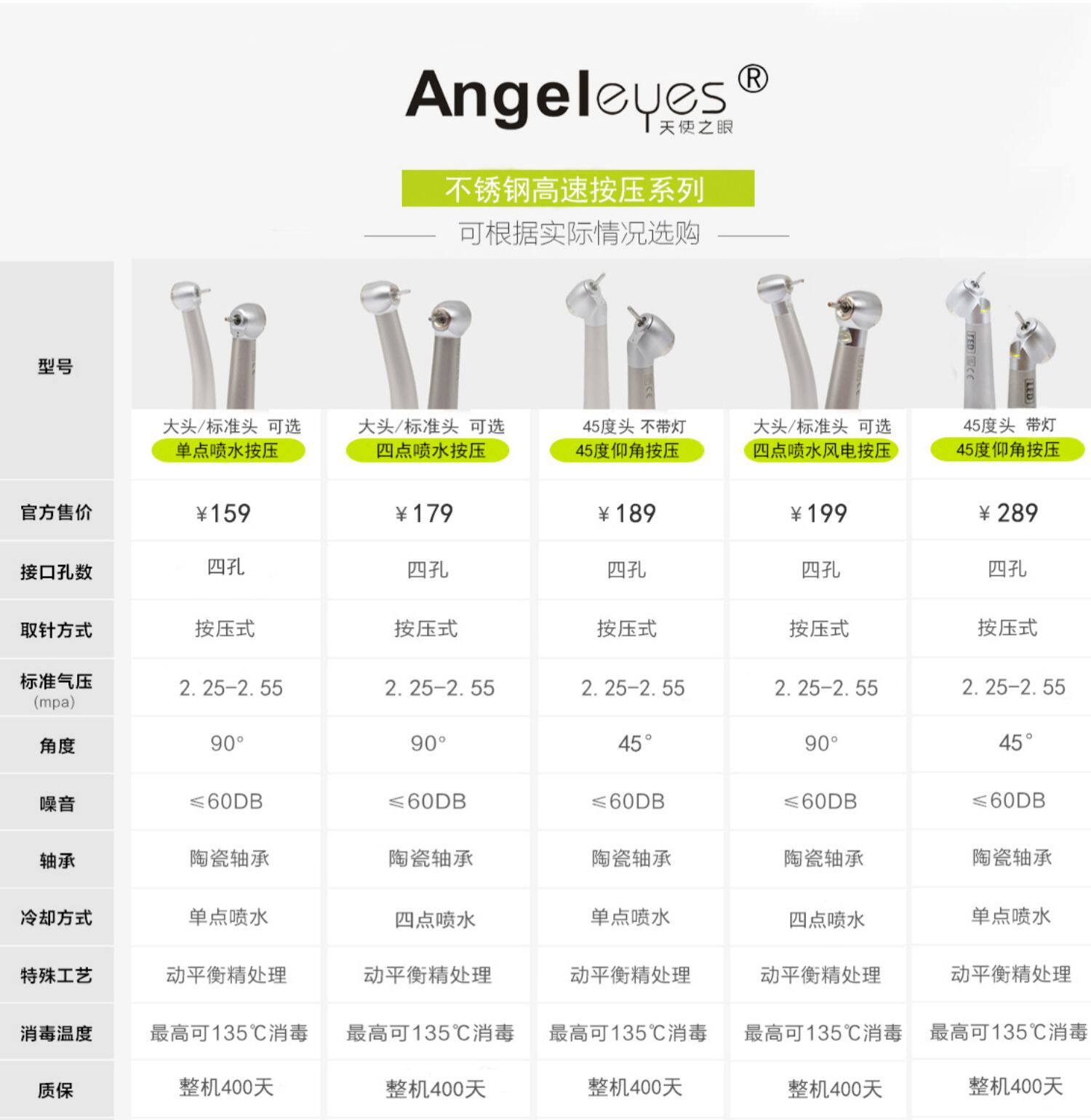 Стоматологическая высокая скорость мобильных телефонов с лампами с лампой из нержавеющей стали инструмент зубной полости Профессиональные молярные быстрые стоматологические установки быстрое соединение