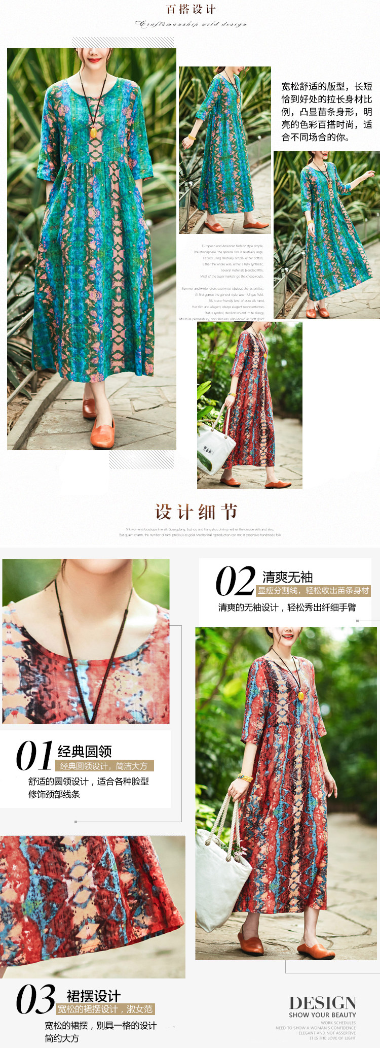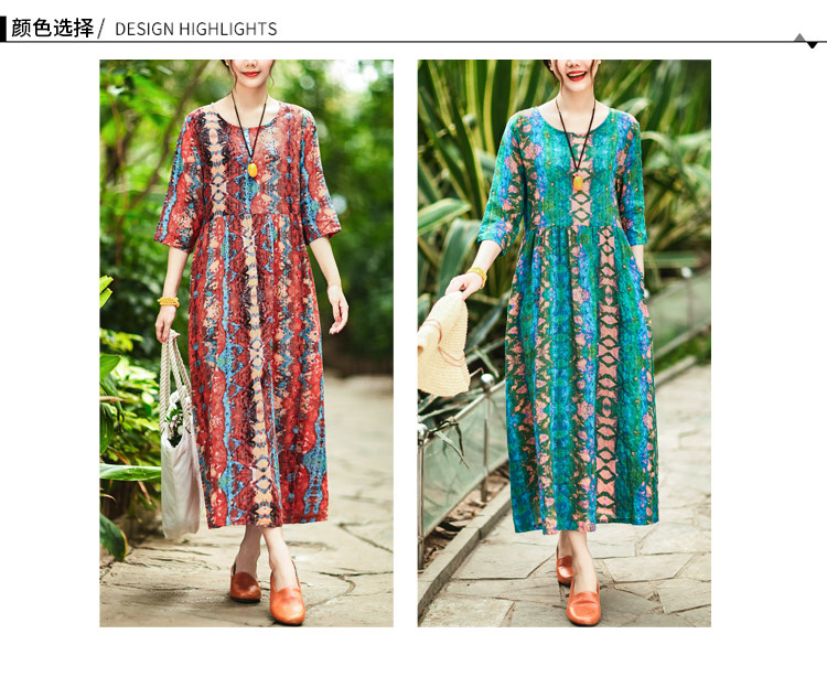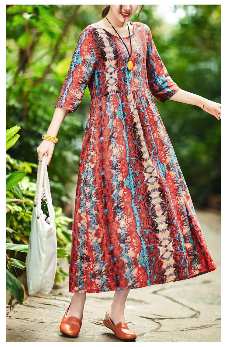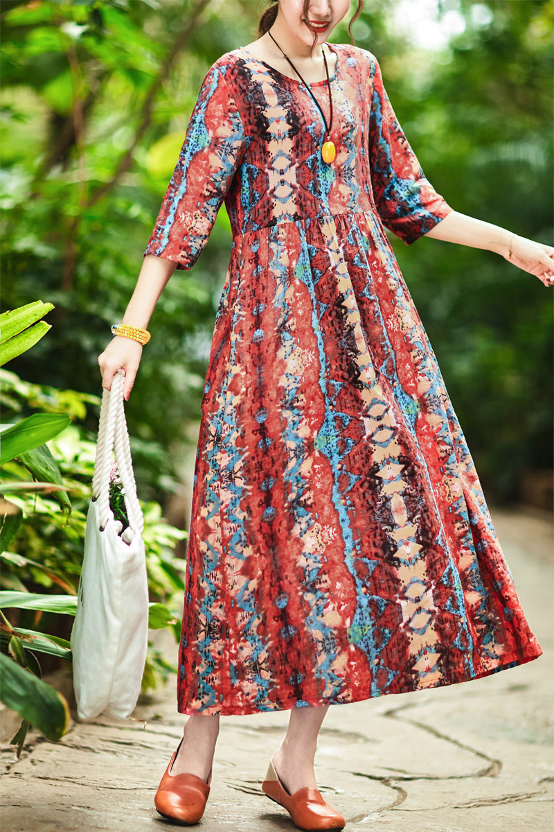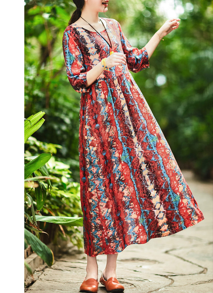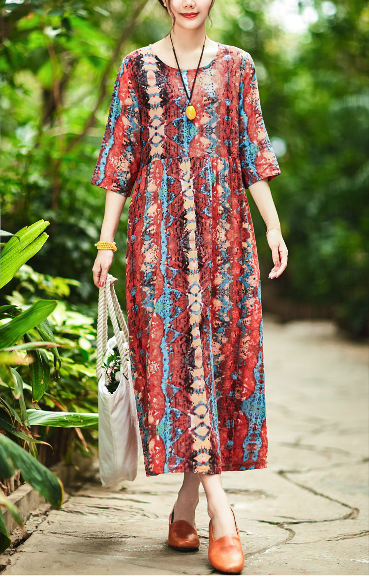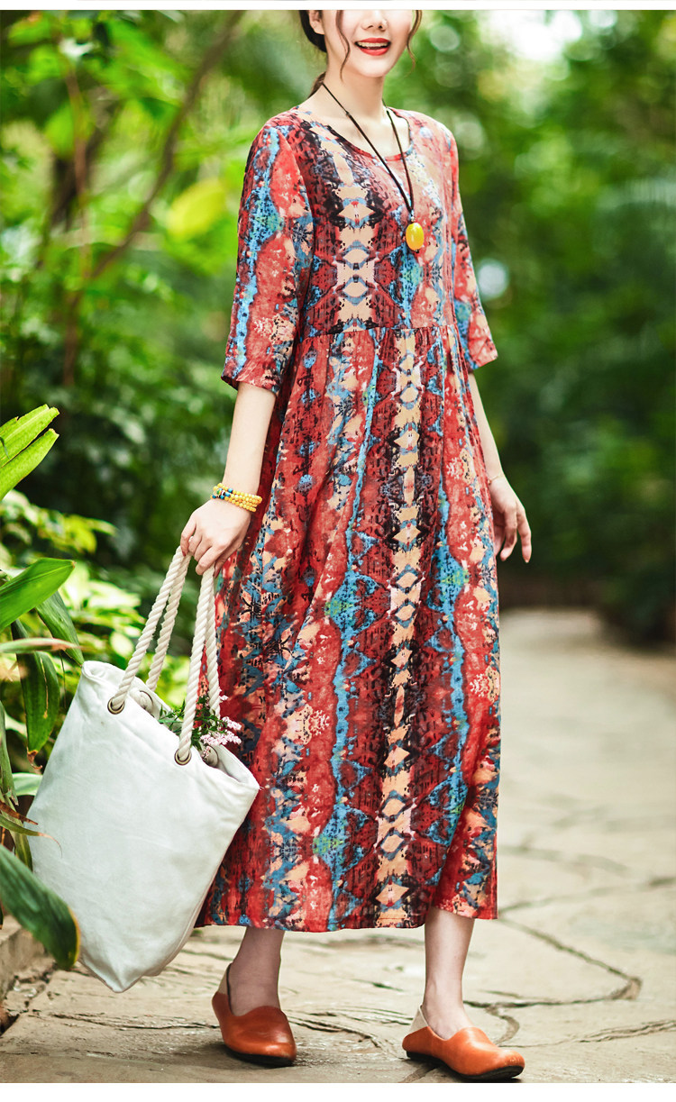 Летнее ретро этническое тонкое платье большого размера, этнический стиль, высокая талия, из хлопка и льна, большой размер, свободный крой
