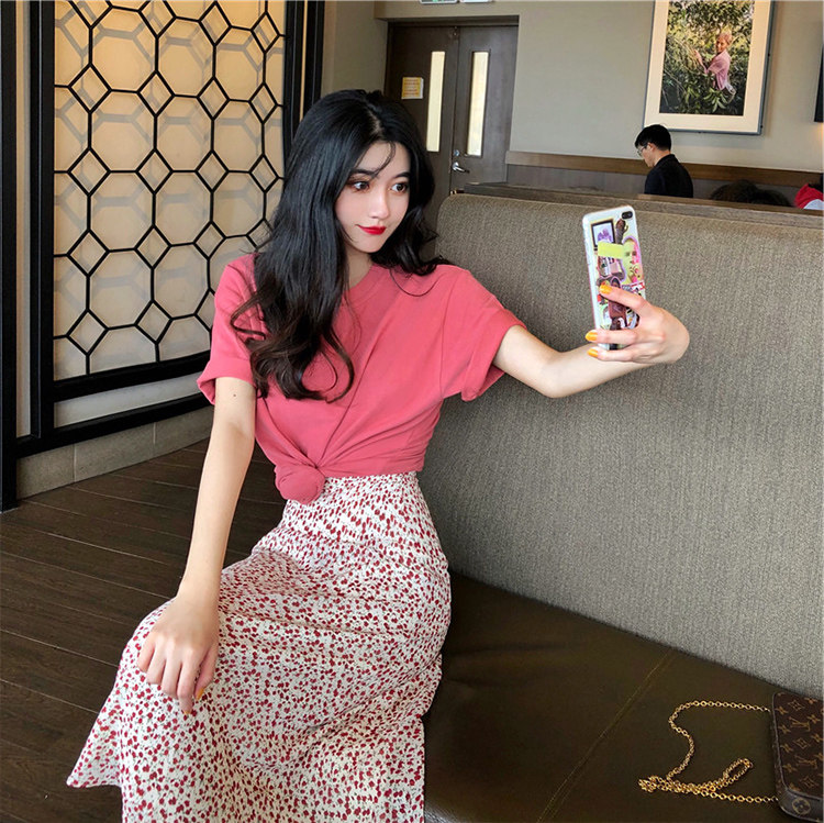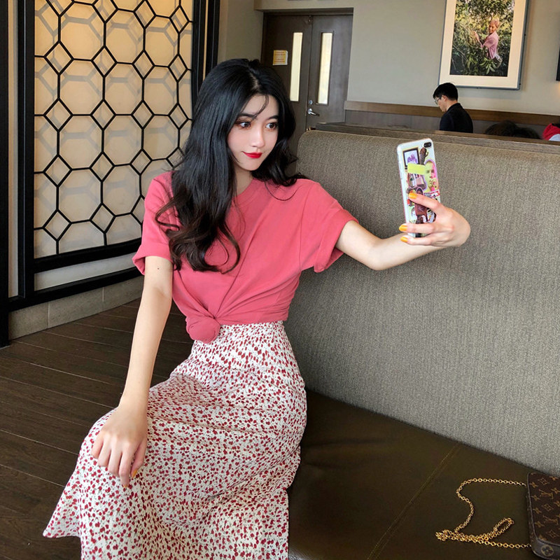 Комплект, летняя модная юбка, популярно в интернете, в западном стиле, французский стиль, по фигуре, в корейском стиле