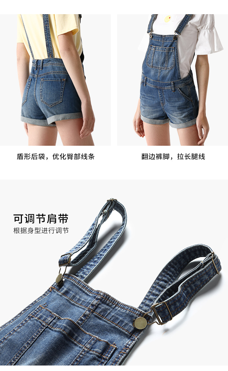 艾米恋 Джинсовые подтяжки, шорты, универсальные штаны для школьников, в корейском стиле, 2020, высокая талия