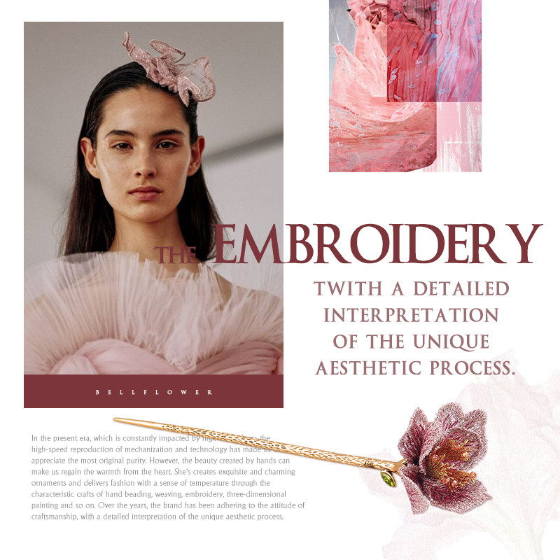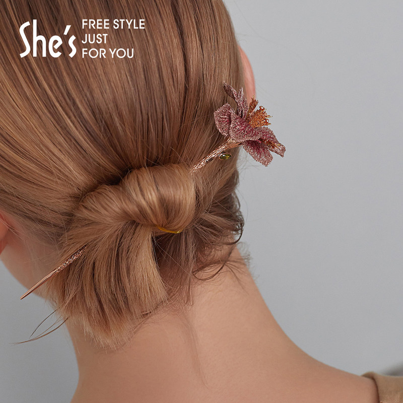 Оригинальная дизайнерская заколка для волос, китайская шпилька, аксессуар для волос, градиент, с вышивкой, в цветочек