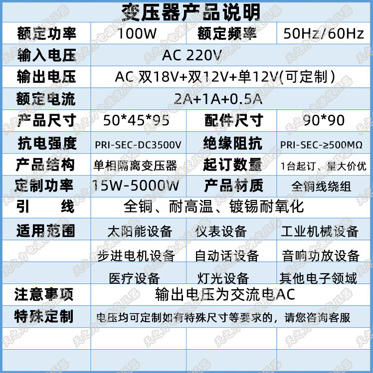 Трансформатор, медный блок питания, 100W, 220v, 18v, 12v, 12v