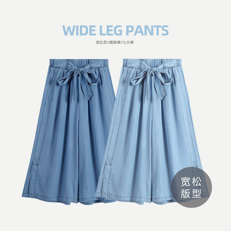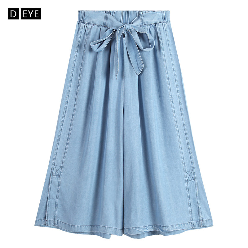 Летние тонкие штаны для отдыха, шелковые джинсы, юбка, эластичная талия