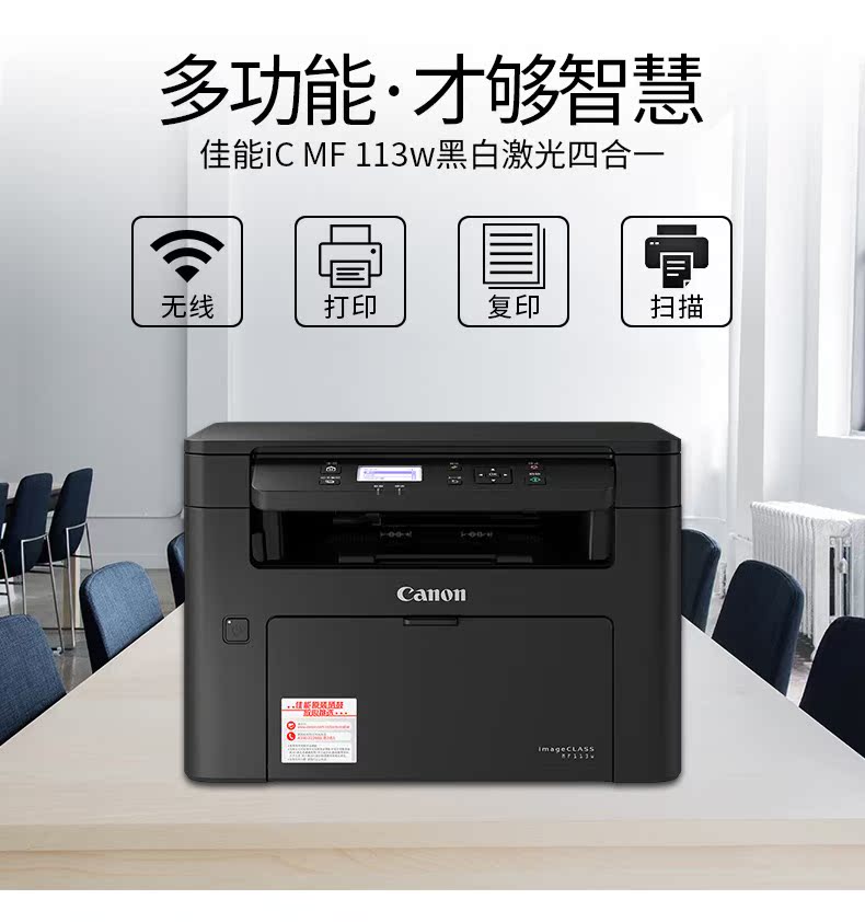 Canon MF113W Беспроводной лазерный принтер Wi -Fi All -in -One Office Copy Scanning Hove Network Много -функция Три -в одном небольшой коммерческой черно -белой операции A4 ID Operation 112