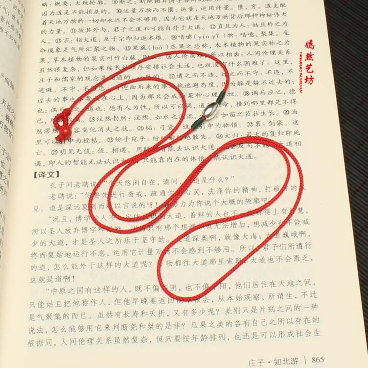 Размер можно исправить самостоятельно (Если поясная цепочка слишком велика, переместите красные бусины киновари вперед в подходящее положение и завяжите узел, а лишнюю веревку отрежьте)