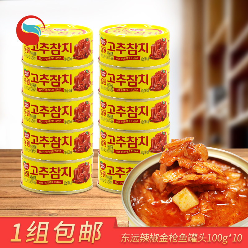 Dongyuan Chili Golden Tuna Connied Corean Imported Food, глотает рыбу, открытая банка, et 100g*10 банок