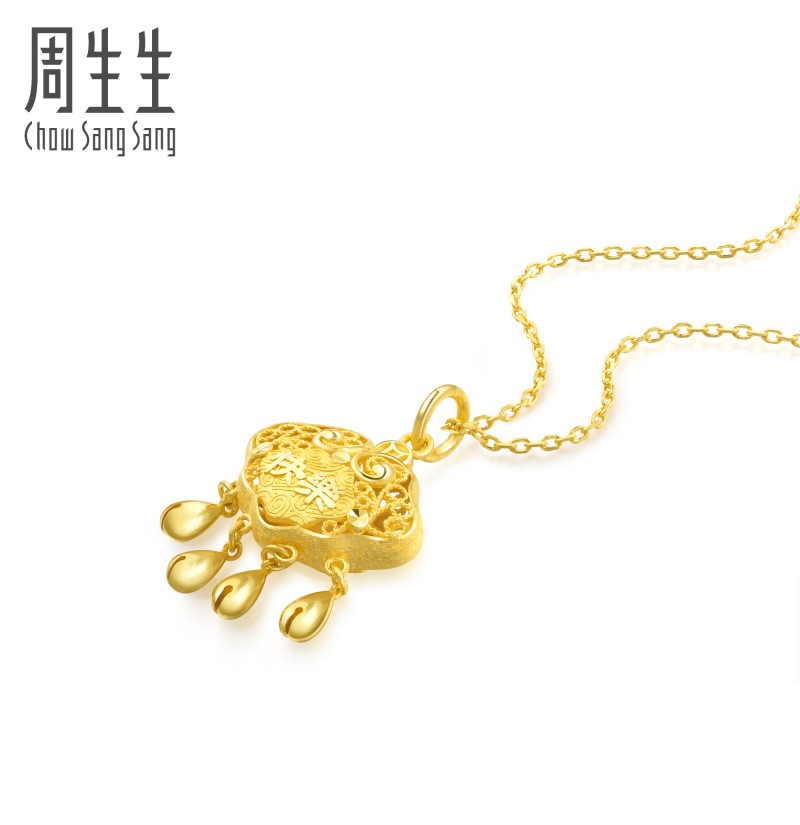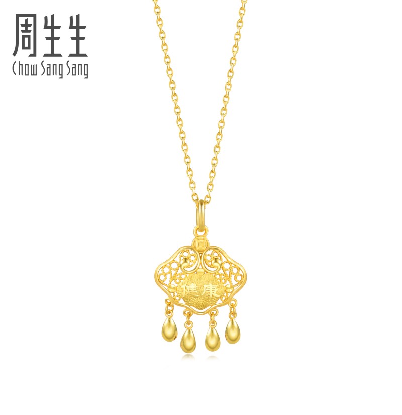 周生生 Здоровый и счастливый золотой замок, замок долголетия, полное золото, маленькие золотые бусины, золотой кулон, золотые украшения 91005P, цена