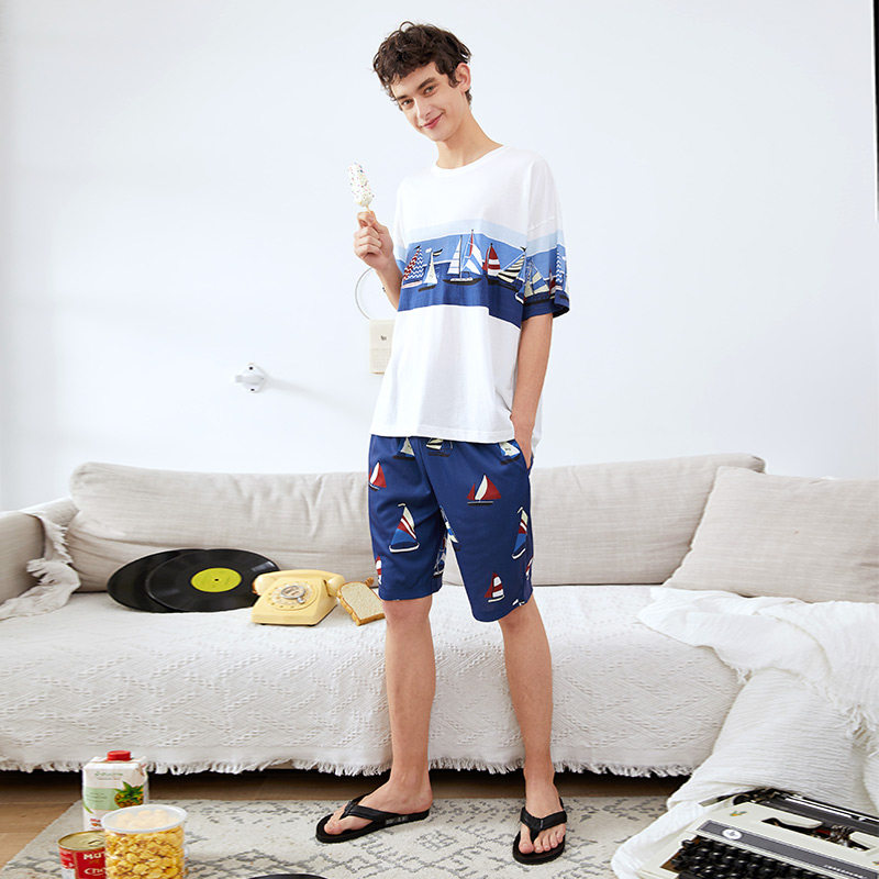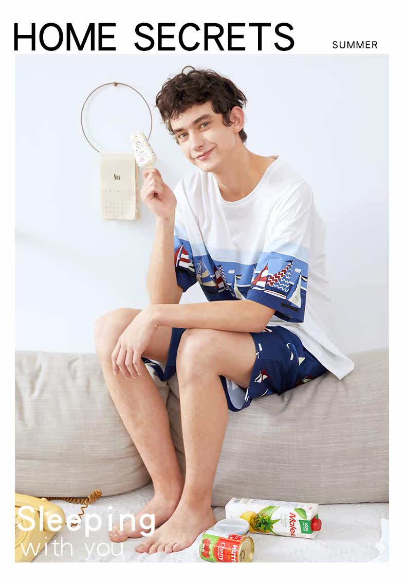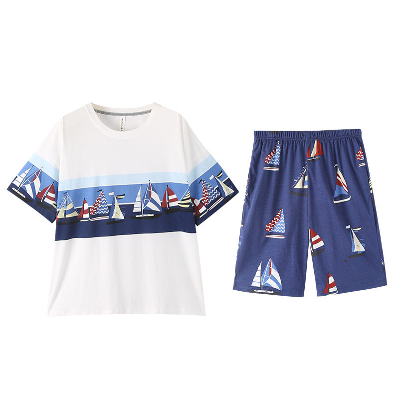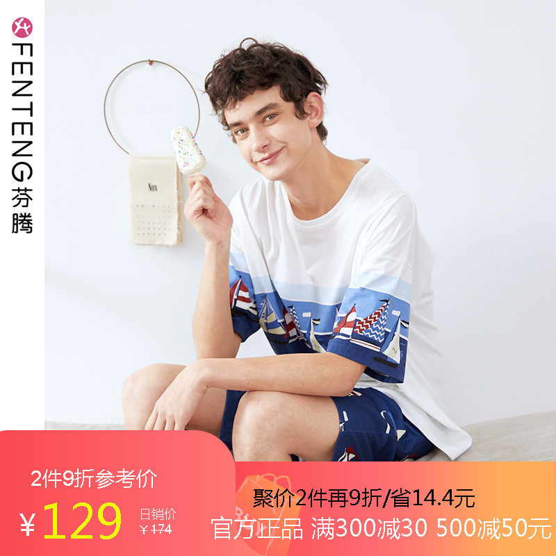 芬腾 Летняя хлопковая пижама, тонкие шорты, хлопковый комплект для отдыха, короткий рукав, оверсайз