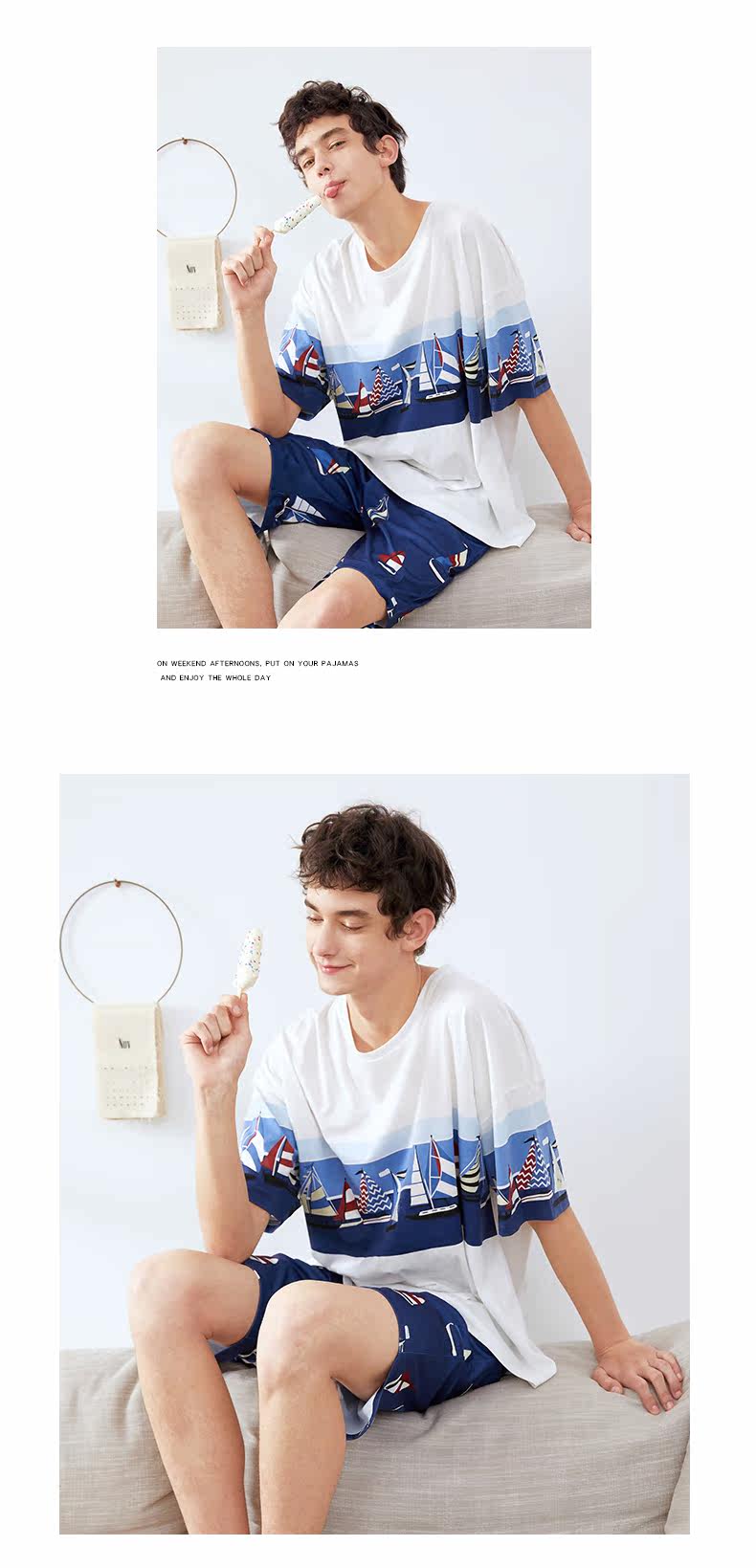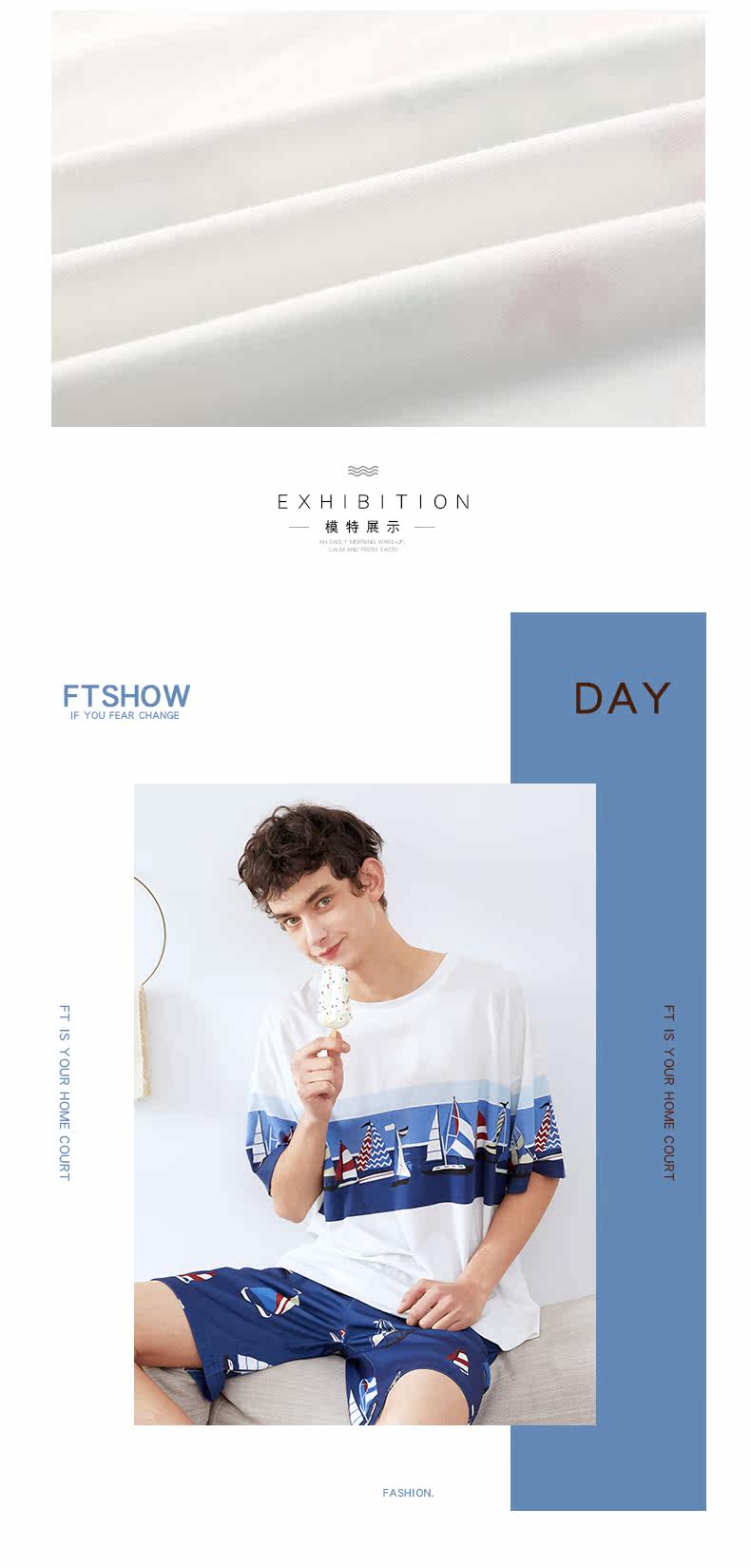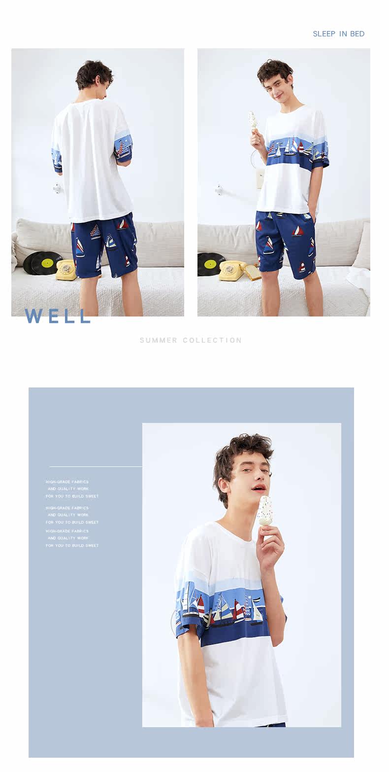 芬腾 Летняя хлопковая пижама, тонкие шорты, хлопковый комплект для отдыха, короткий рукав, оверсайз