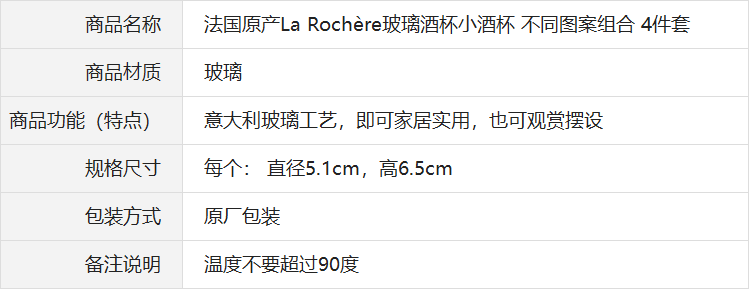 Импортная бессвинцовая стеклянная стопка, комплект, Франция, 4 шт, 6.5см