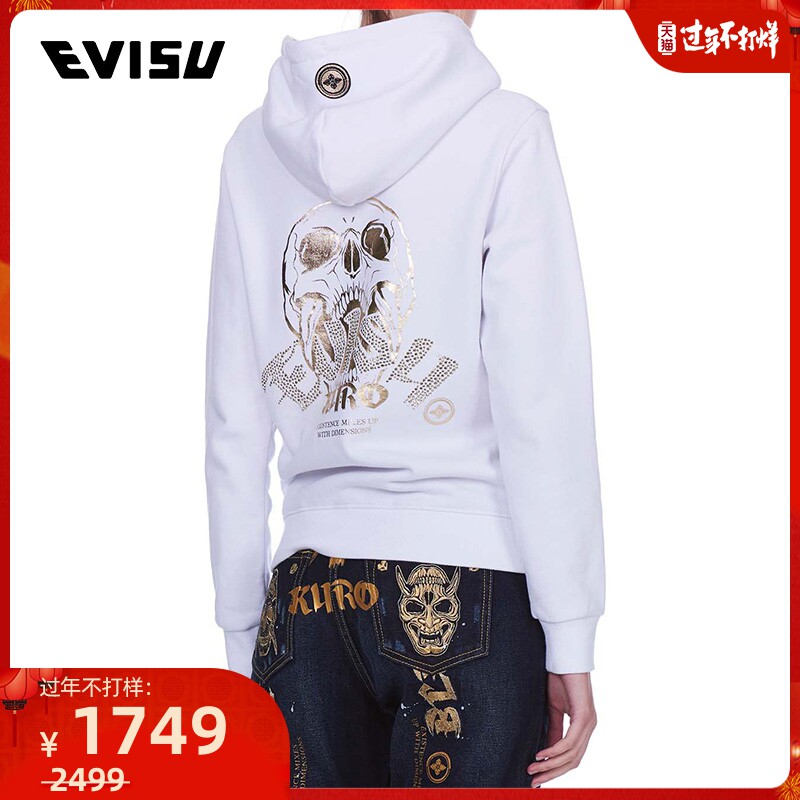 EVISU EVISUKURO 18AW Женская толстовка с капюшоном и принтом черепа Hannya 1EAGNW8SW488XX