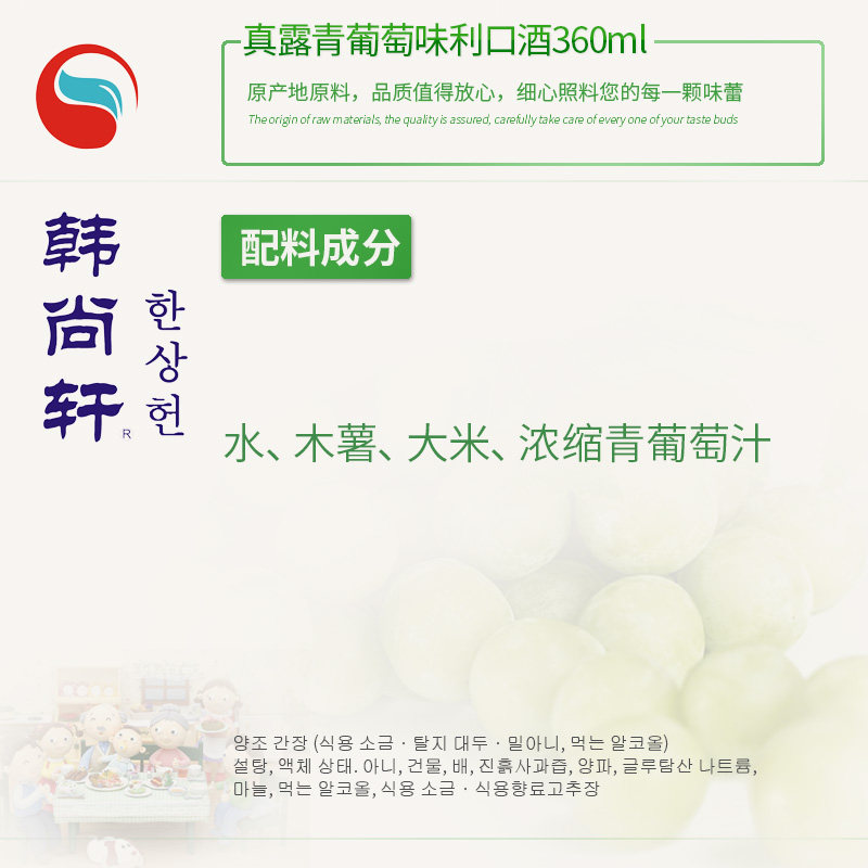 Вся коробка Южной Кореи импортировала новое настоящее углеродное вино 360 мл*20 зеленого винограда 13 градусов и приготовлено дистиллированное океанское вино