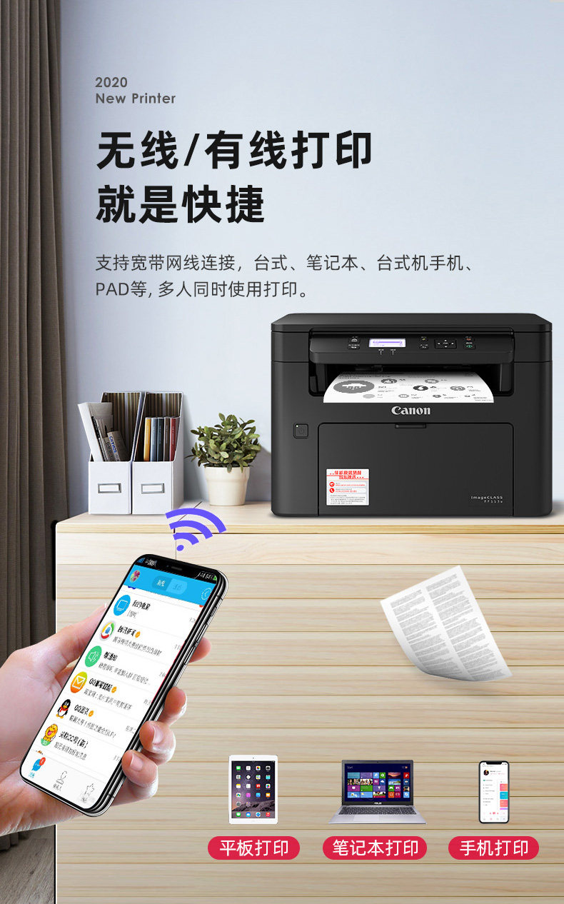 Canon MF113W Черно -белый лазерный принтер сканирование всех -в одном офисном домашнем беспроводном Wi -Fi Небольшой коммерческий офис Мобильный телефон A4 Студенческая тестовая бумага Сертификат высокий многофункциональный