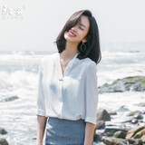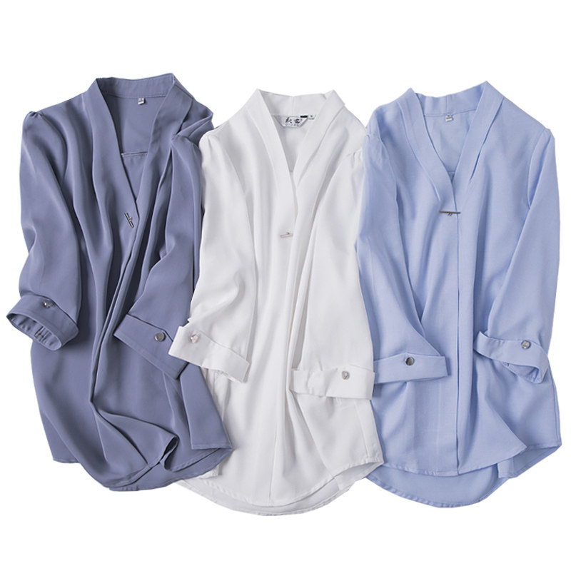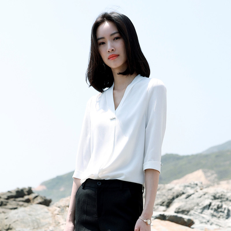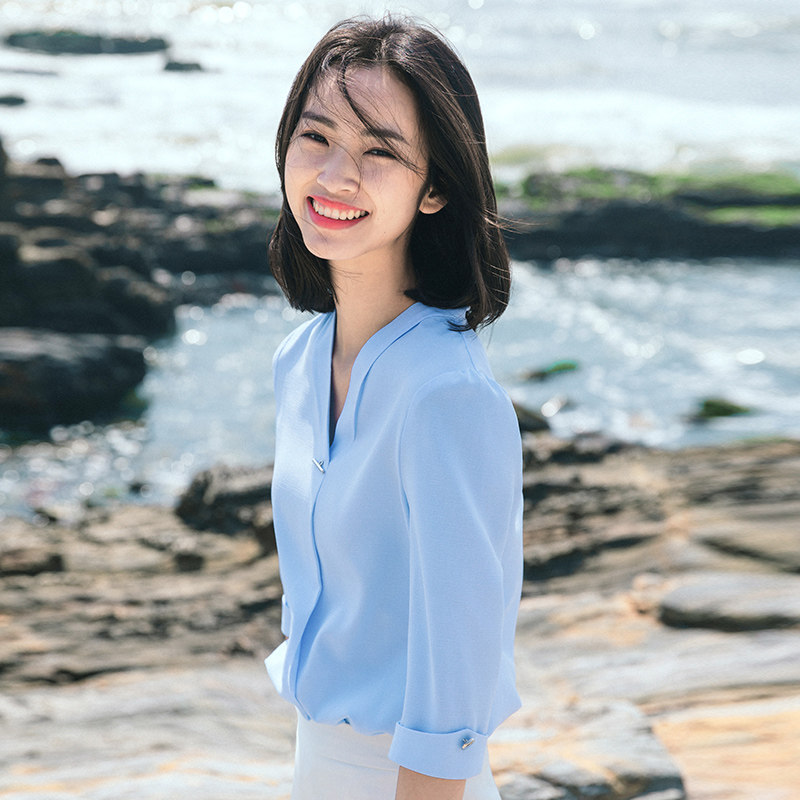 Осенняя белая рубашка, в корейском стиле, V-образный вырез