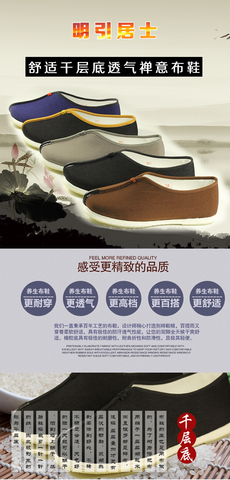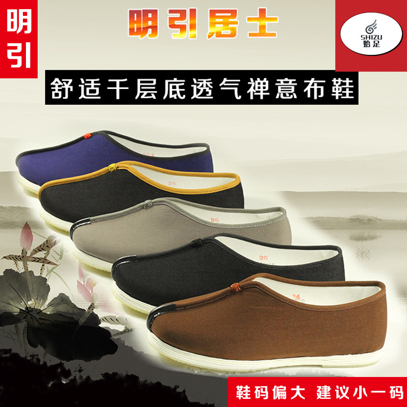 Туфли-монки с тысячеслойной подошвой, обувь для мирян, повседневная тканевая обувь Arhat для мужчин и женщин среднего и пожилого возраста, ручная работа, дышащая, удобная и универсальная.