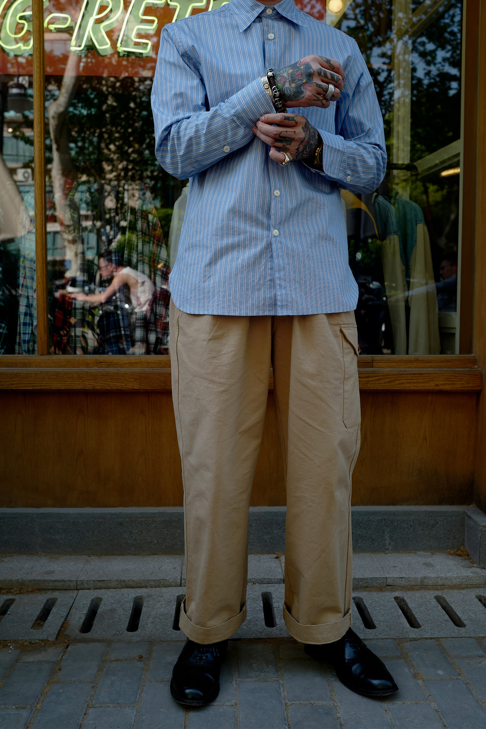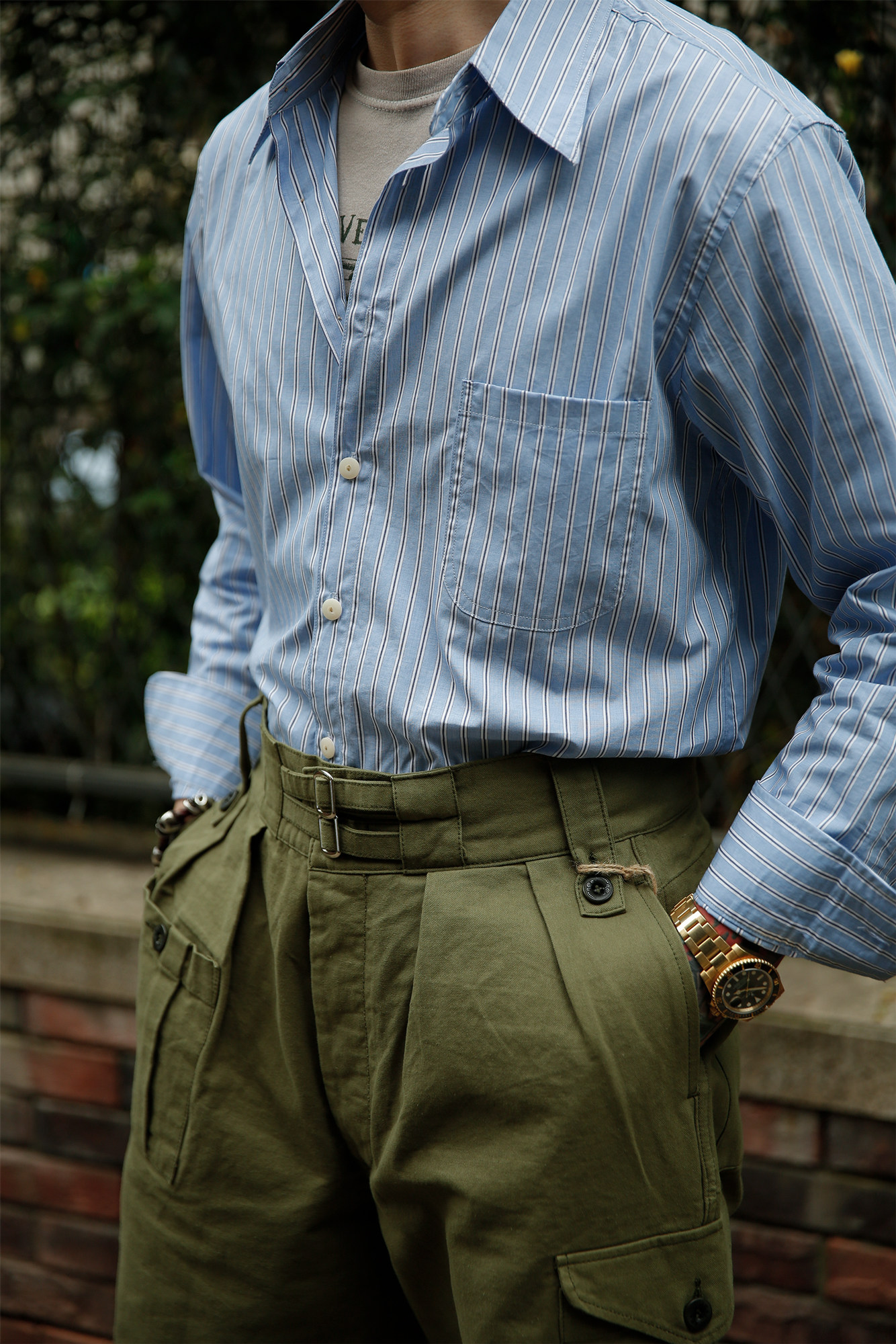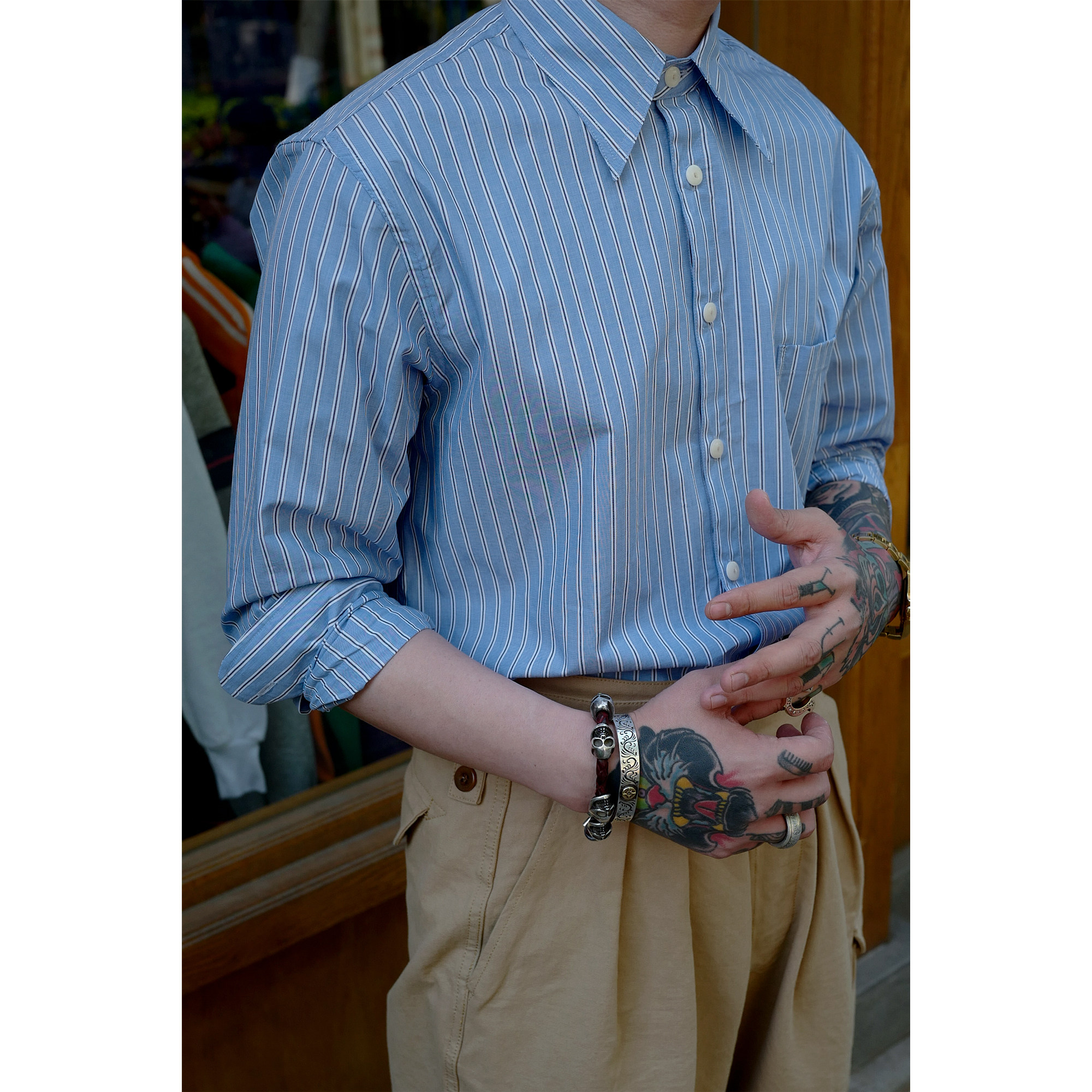 Профсоюз ретро классическая элегантная полосатая рубашка Pure Cotton Lu359