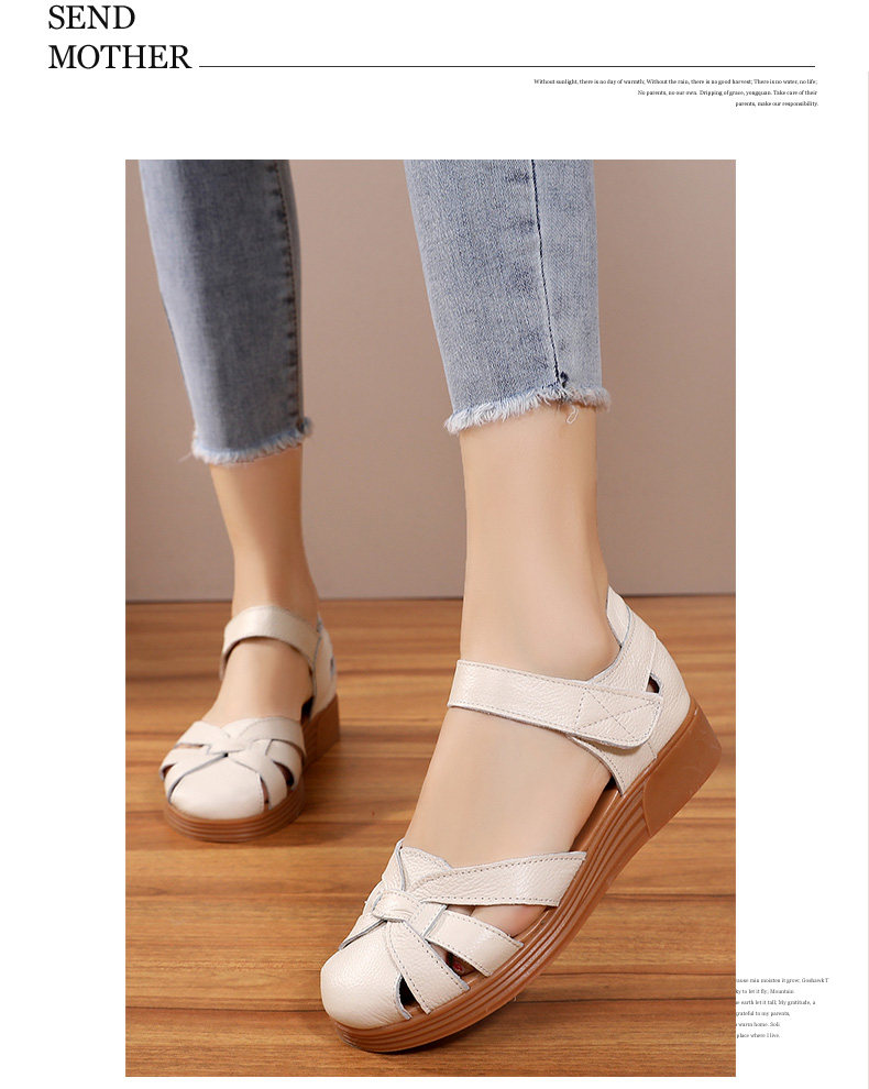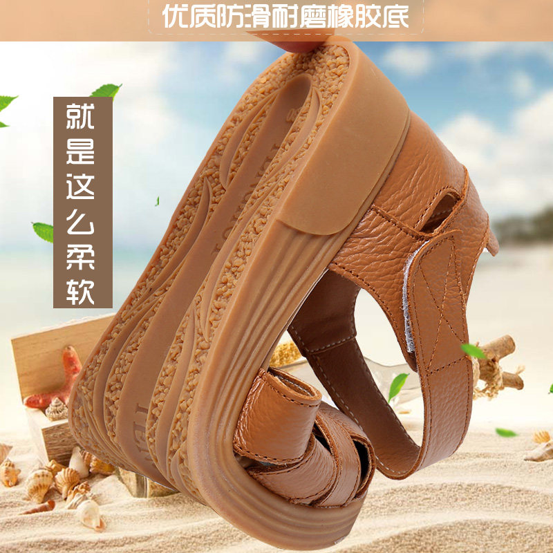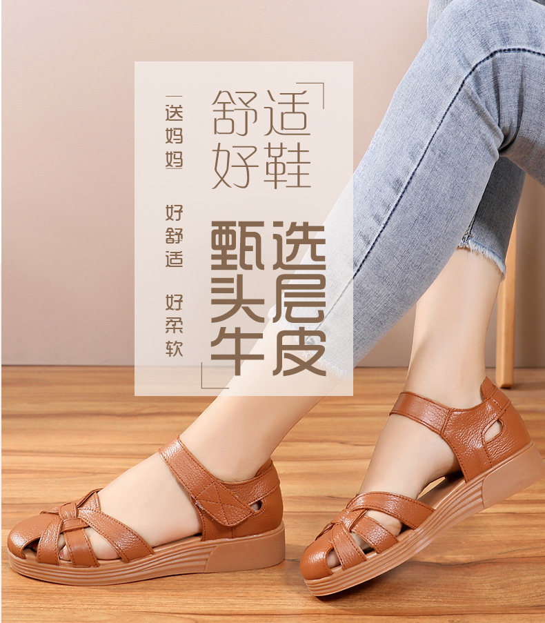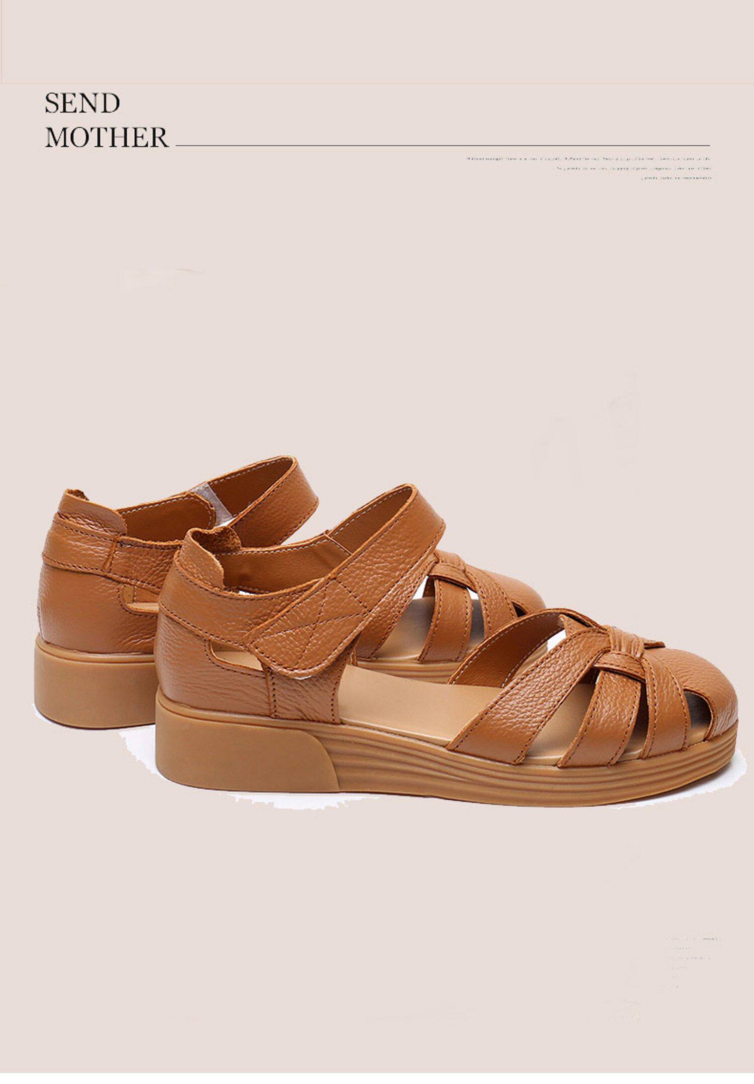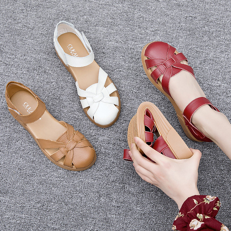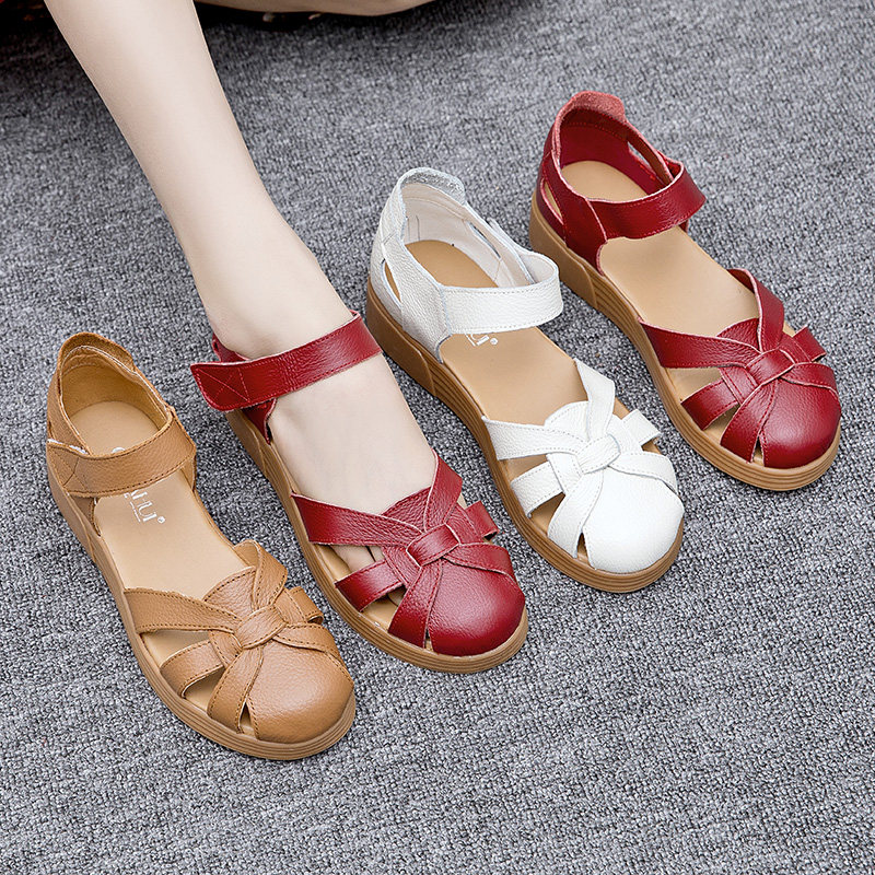 Сандалии для матери, комфортная обувь, летняя красная сумка для обуви для кожаной обуви на липучке, из натуральной кожи, мягкая подошва, для среднего возраста