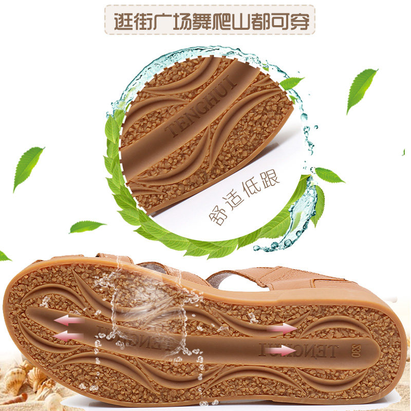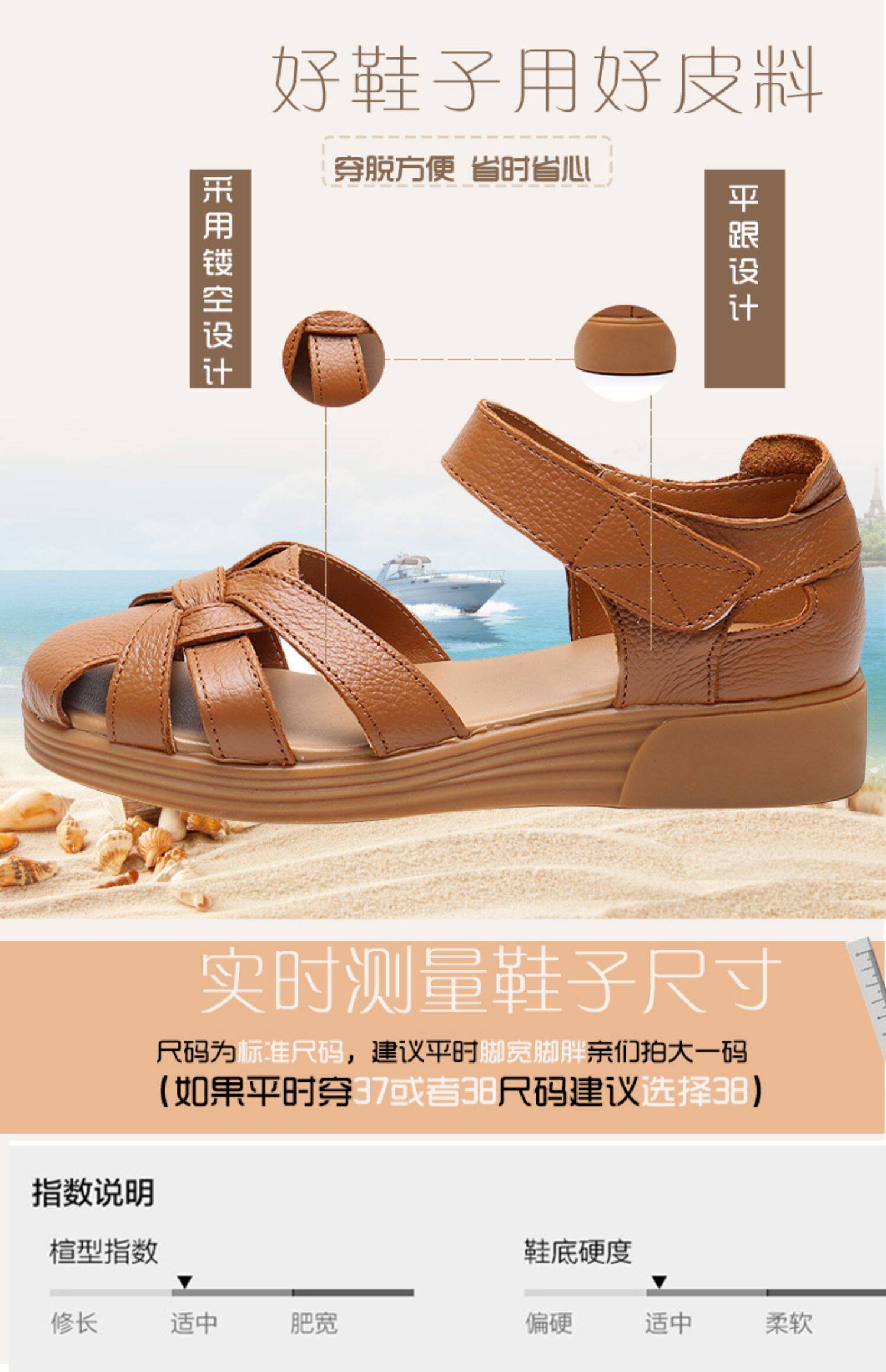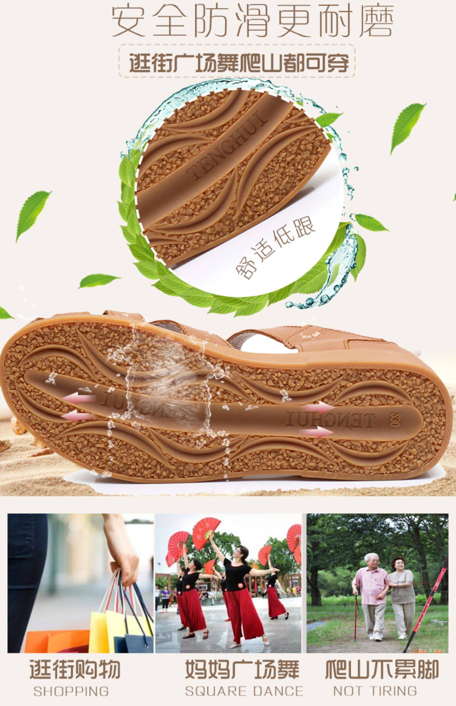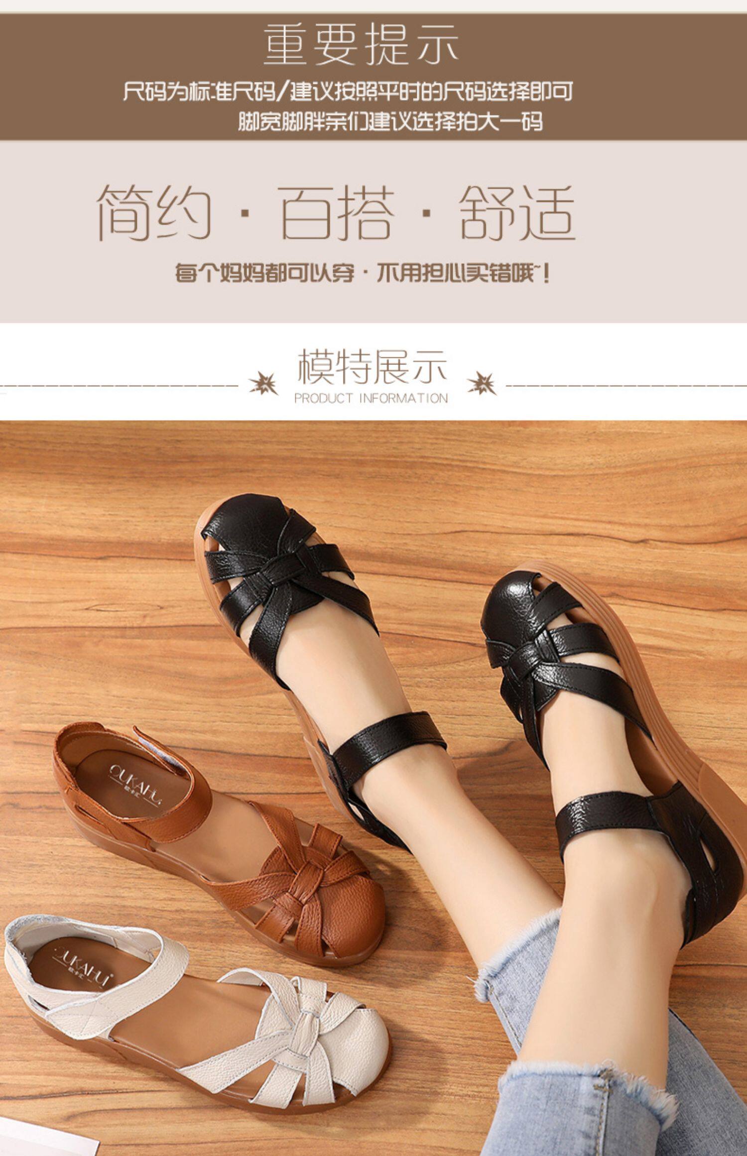 Сандалии для матери, комфортная обувь, летняя красная сумка для обуви для кожаной обуви на липучке, из натуральной кожи, мягкая подошва, для среднего возраста