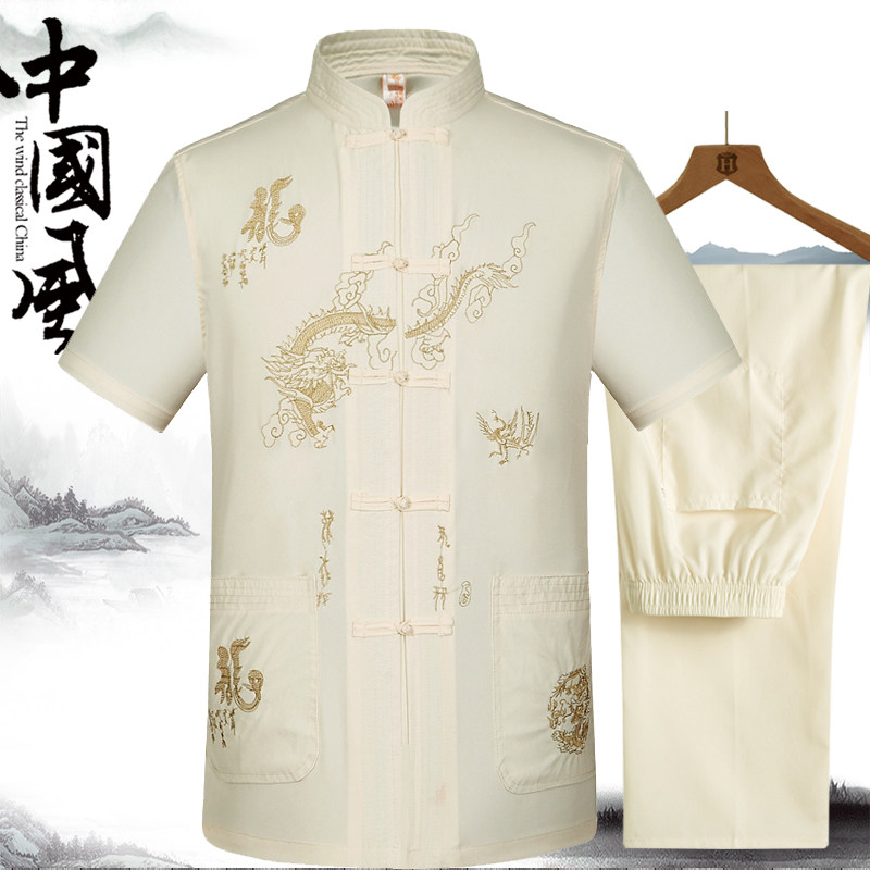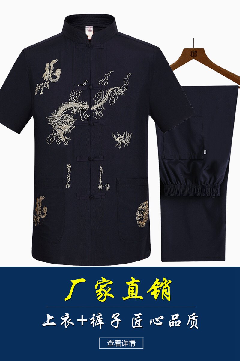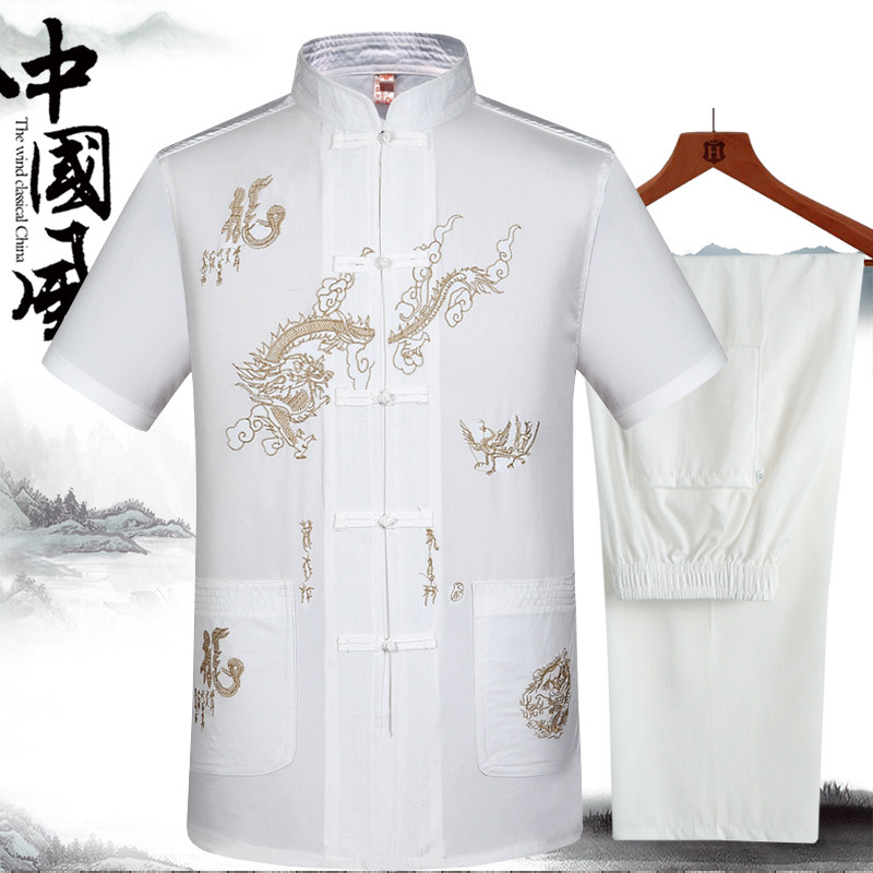 Летний тонкий комплект для пожилых людей, ханьфу, для среднего возраста, короткий рукав, китайский стиль