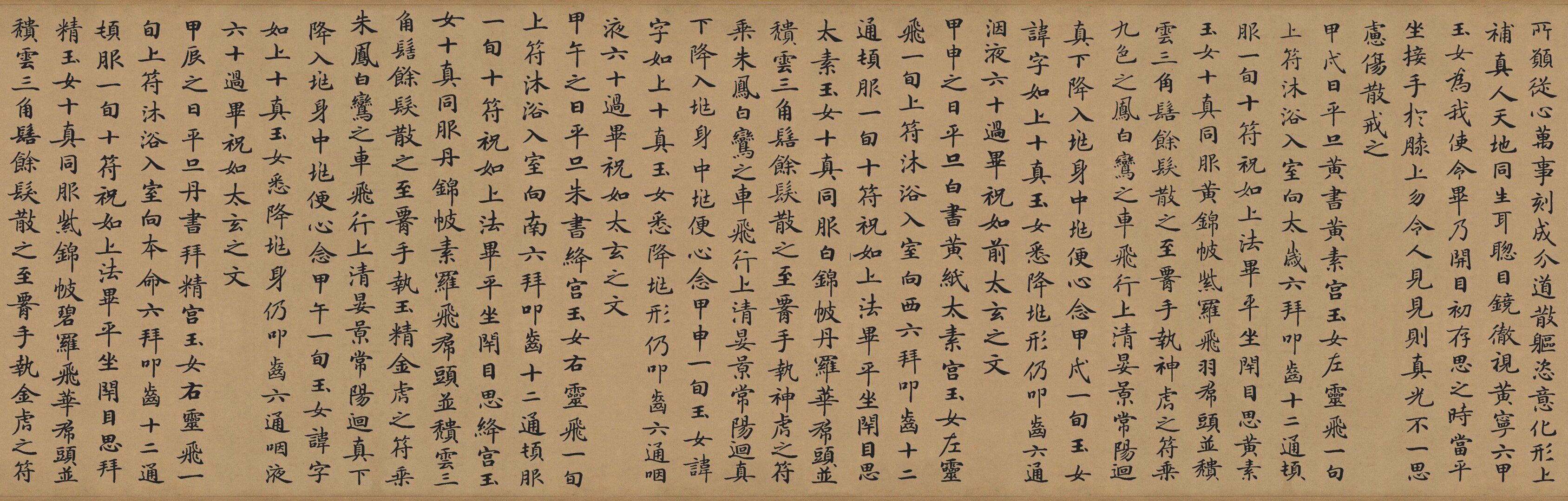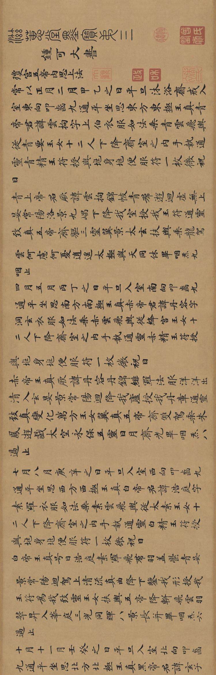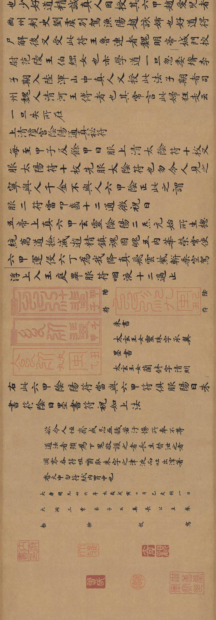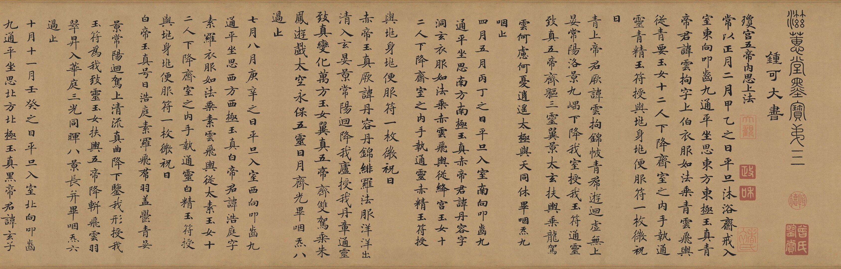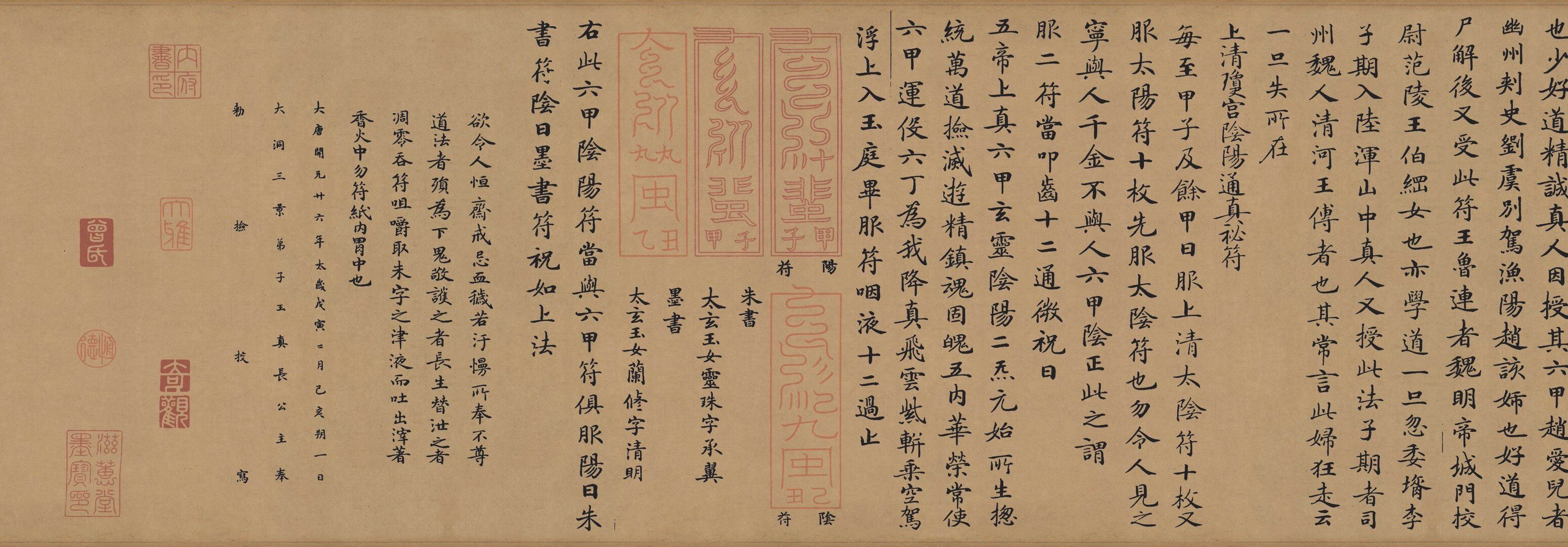 [Антиматическая каллиграфия и живопись] Длинное свиток Чжун Шаодзин "Lingfei Jing" (копия шелковой ткани)