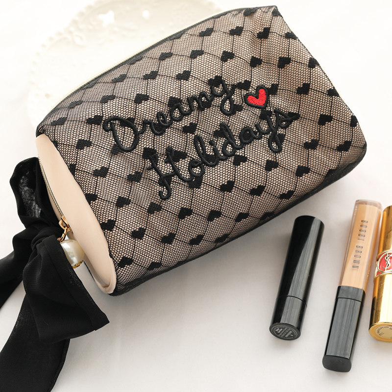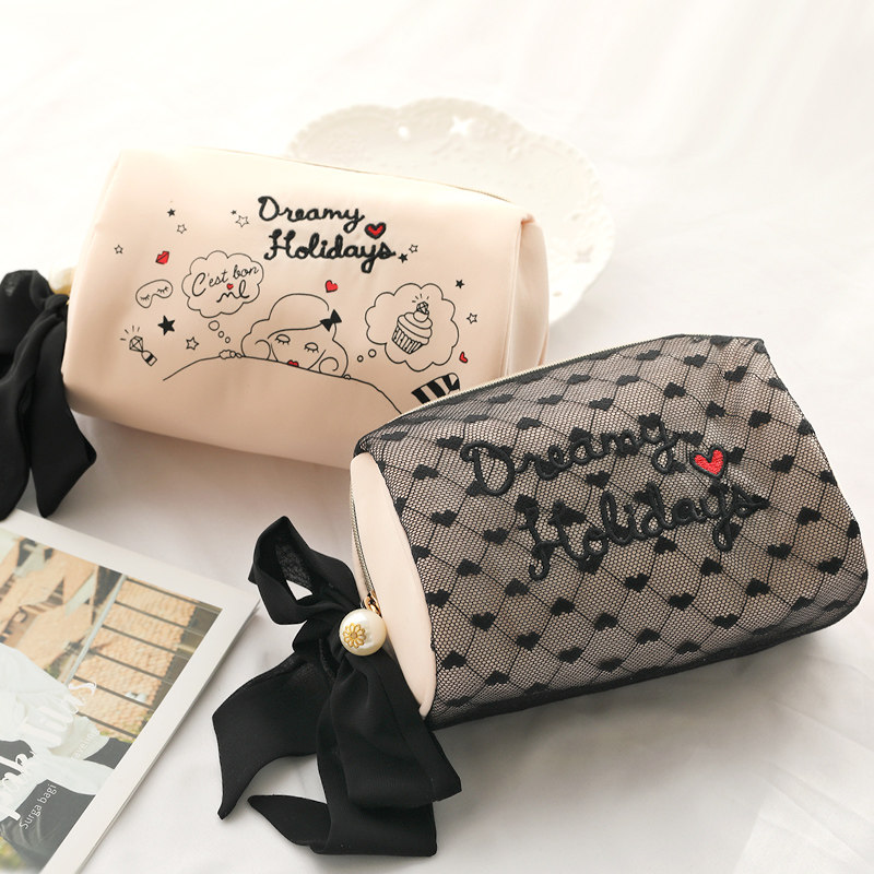 Косметичка, сумка, портативная черная мультяшная вместительная и большая система хранения для путешествий, популярно в интернете, стиль Лолита