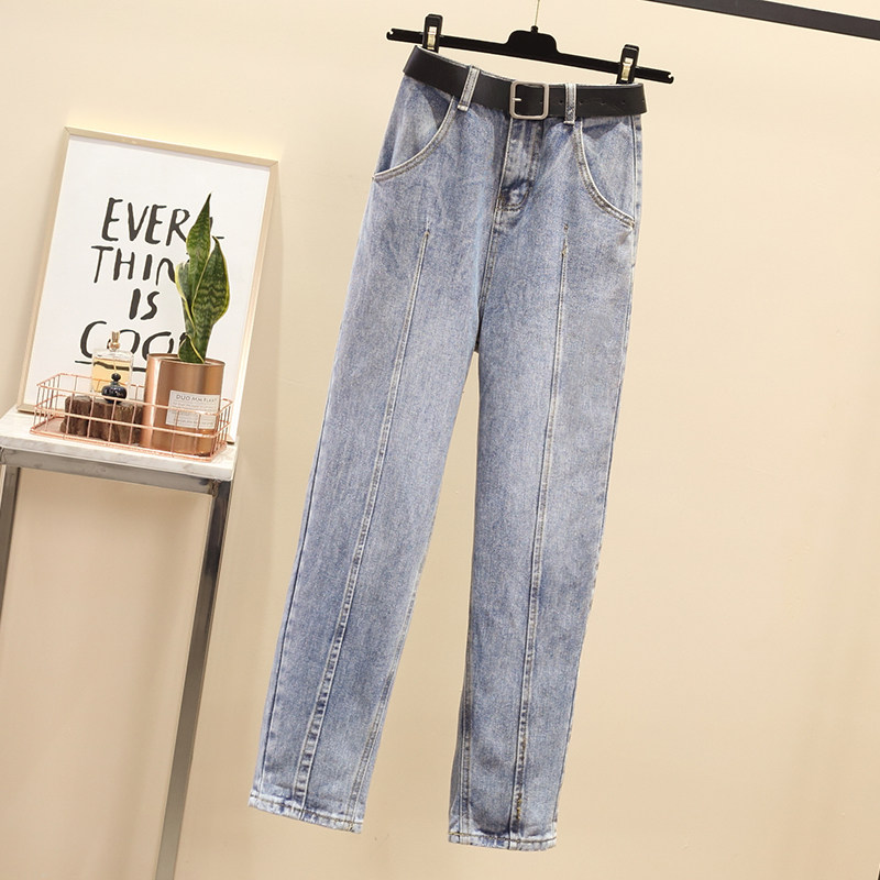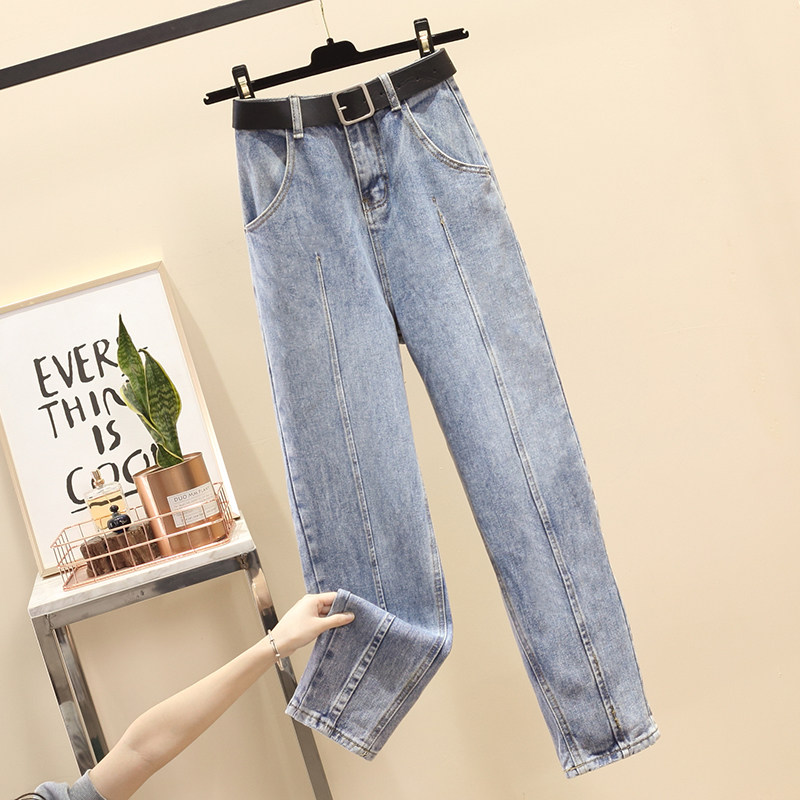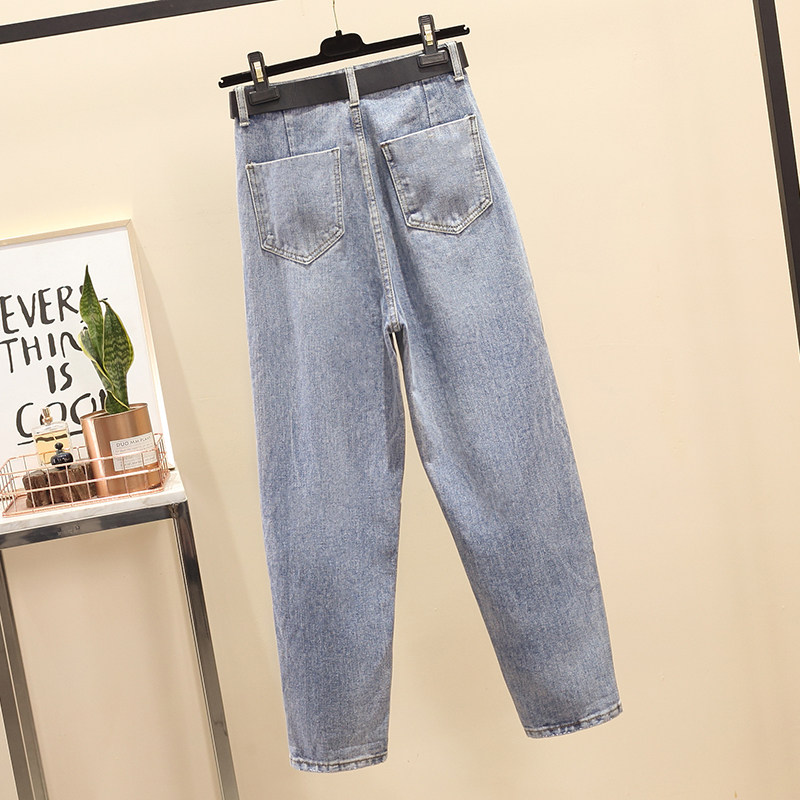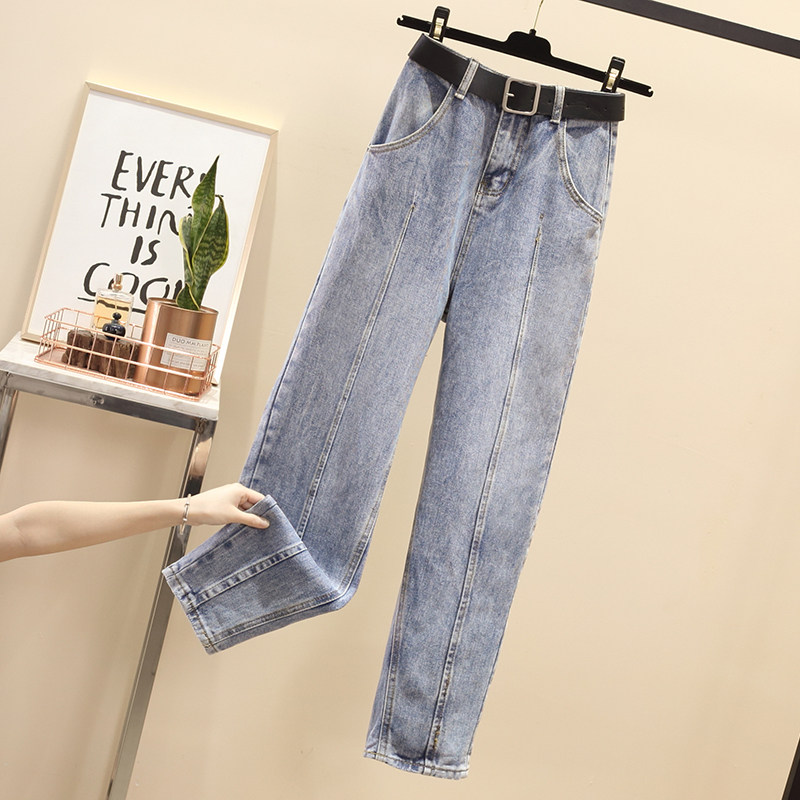 Штаны, весенние летние джинсы для школьников и студентов, высокая талия, большой размер, свободный прямой крой