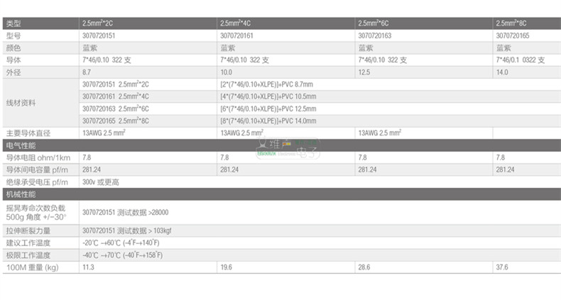 [* 考虑耐脏与悬挂需求,更新了音箱线外被材料,使用非移行性PVC,调整色彩为美观大器的蓝紫色,低调中兼顾了质感,内芯绝缘使用的XLPE 是一种耐燃材质,具有耐高压, 耐高温特性,有远低于PVC 的介电系数!并且在制作缆线时上锡不会导致绝缘熔化, 是您最好的选择!]