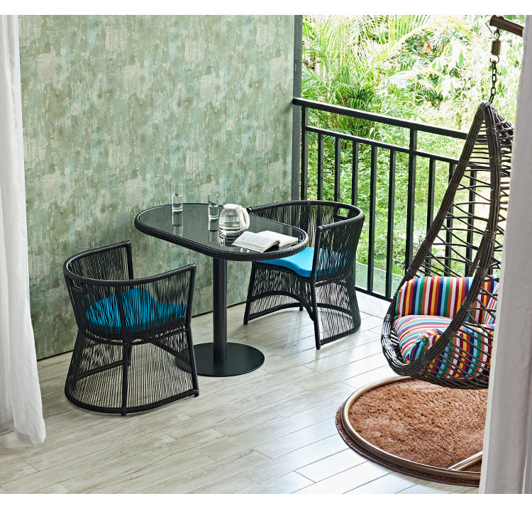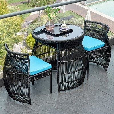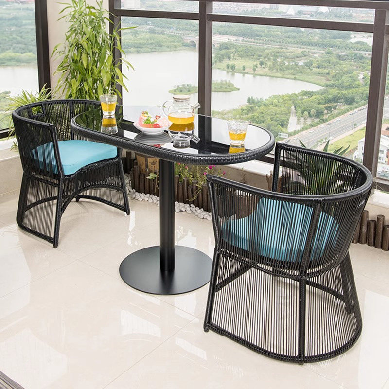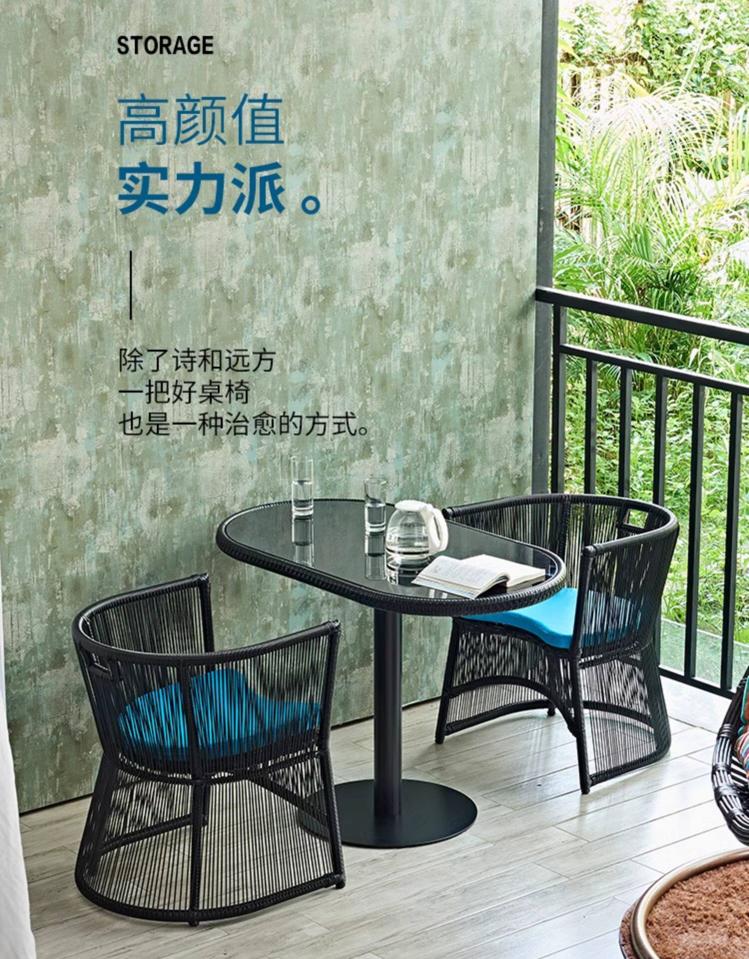 [阳台小茶桌椅组合套装休闲区布置小户型公寓卧室酒店名宿户外藤椅]