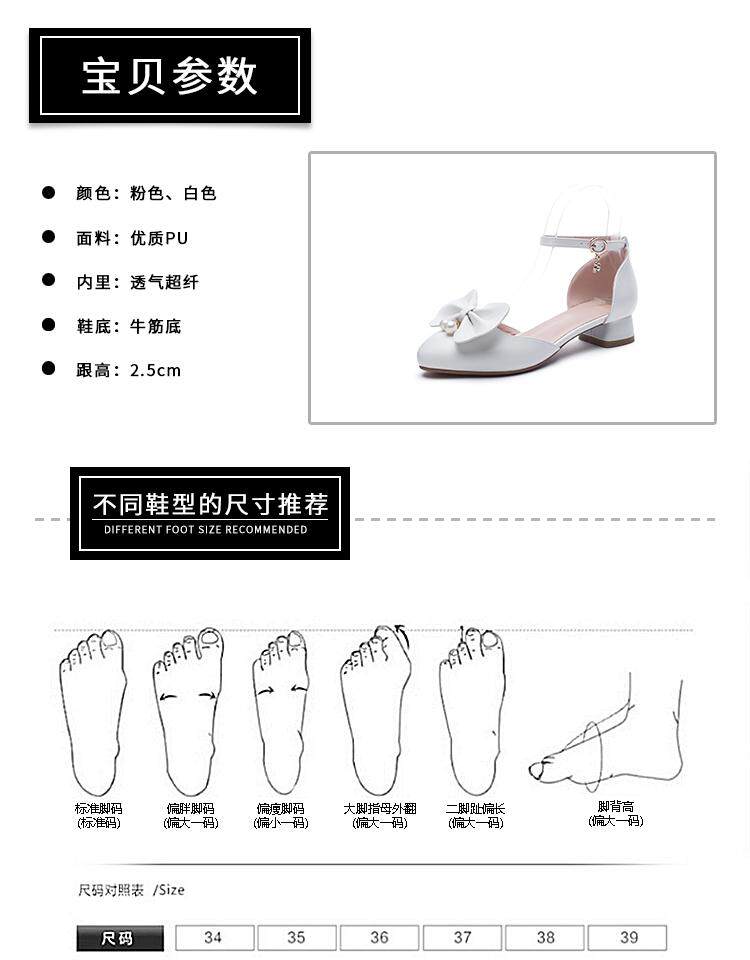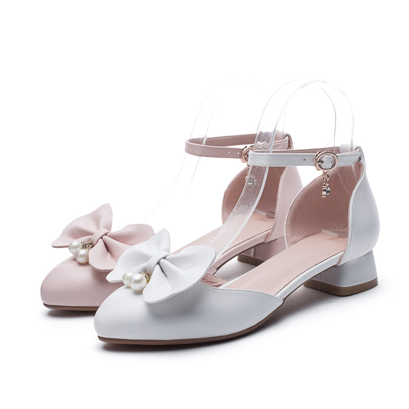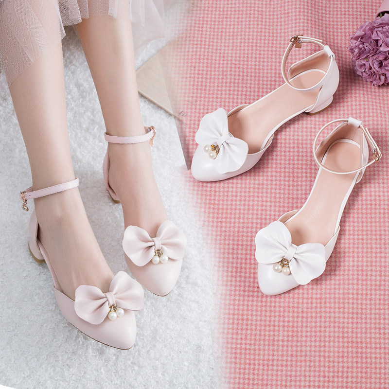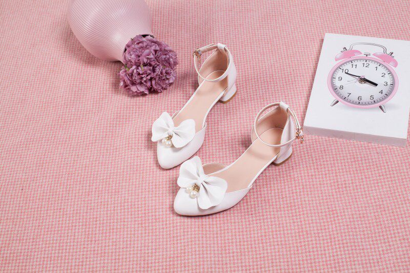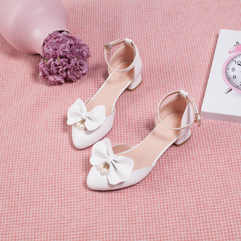 Босоножки, летние туфли на высоком каблуке с бантиком, белый наряд маленькой принцессы, 2019