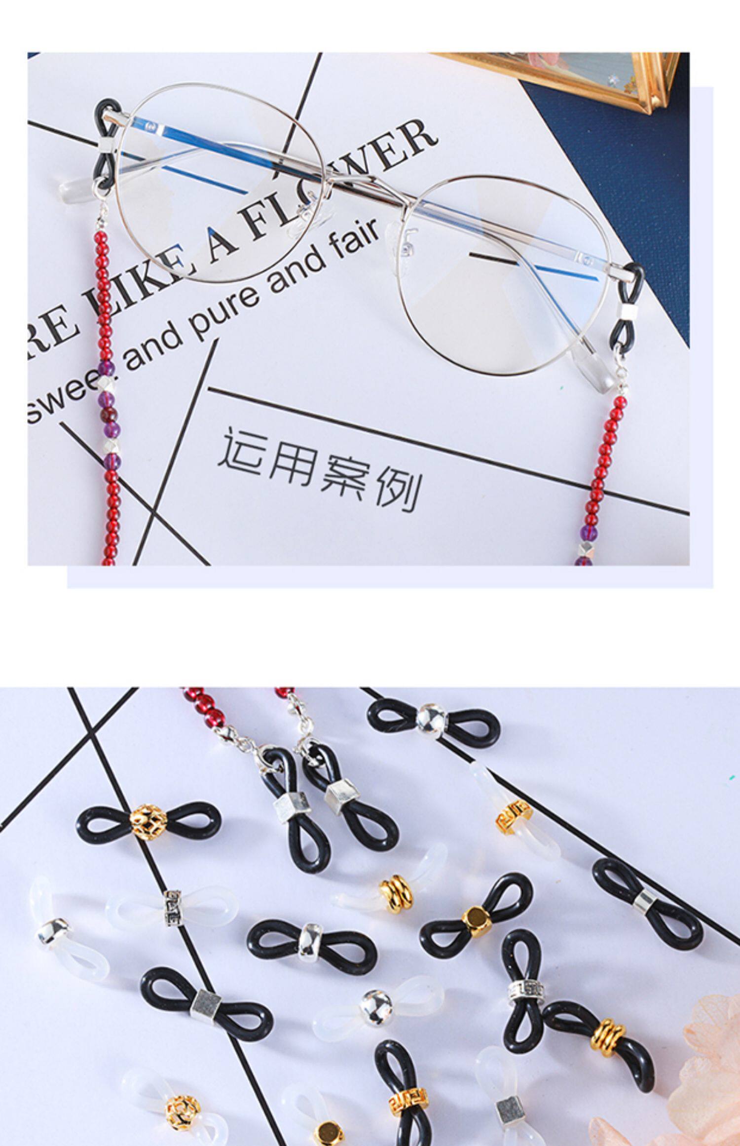 Силиконовые нескользящие резиновые кольца, аксессуар, солнцезащитные очки, серебро 925 пробы, противоскользящая пряжка