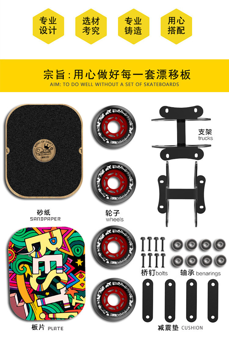 Скейтборд для взрослых для начинающих, раздельная игрушка для пожилых людей на четырех колесах