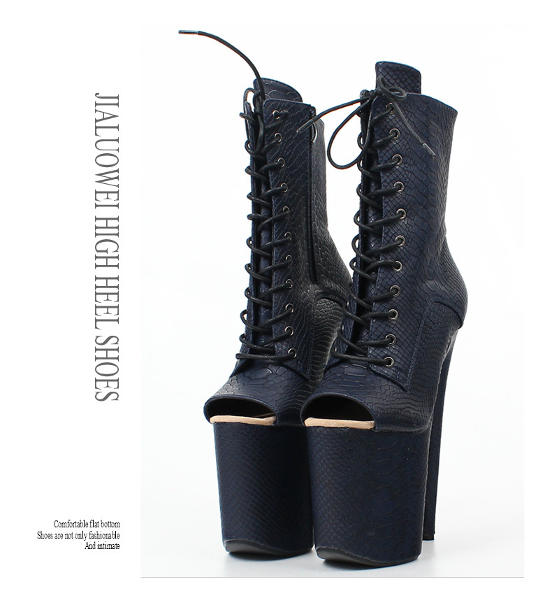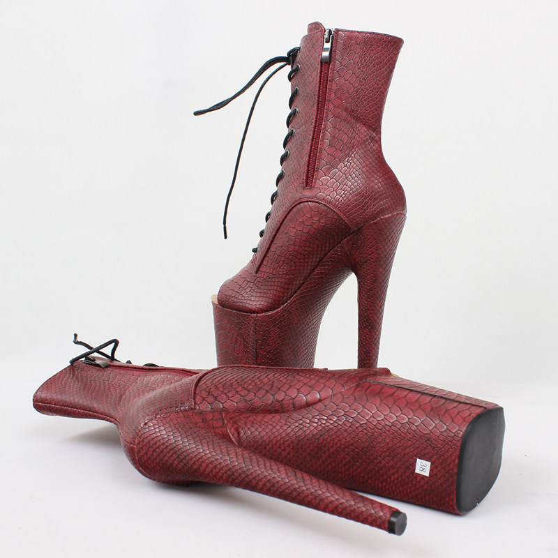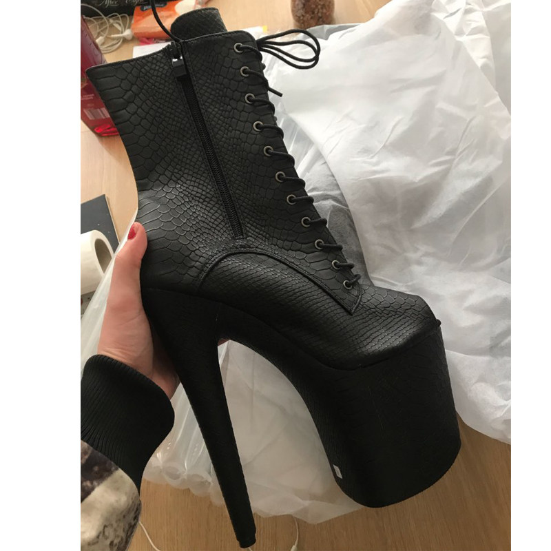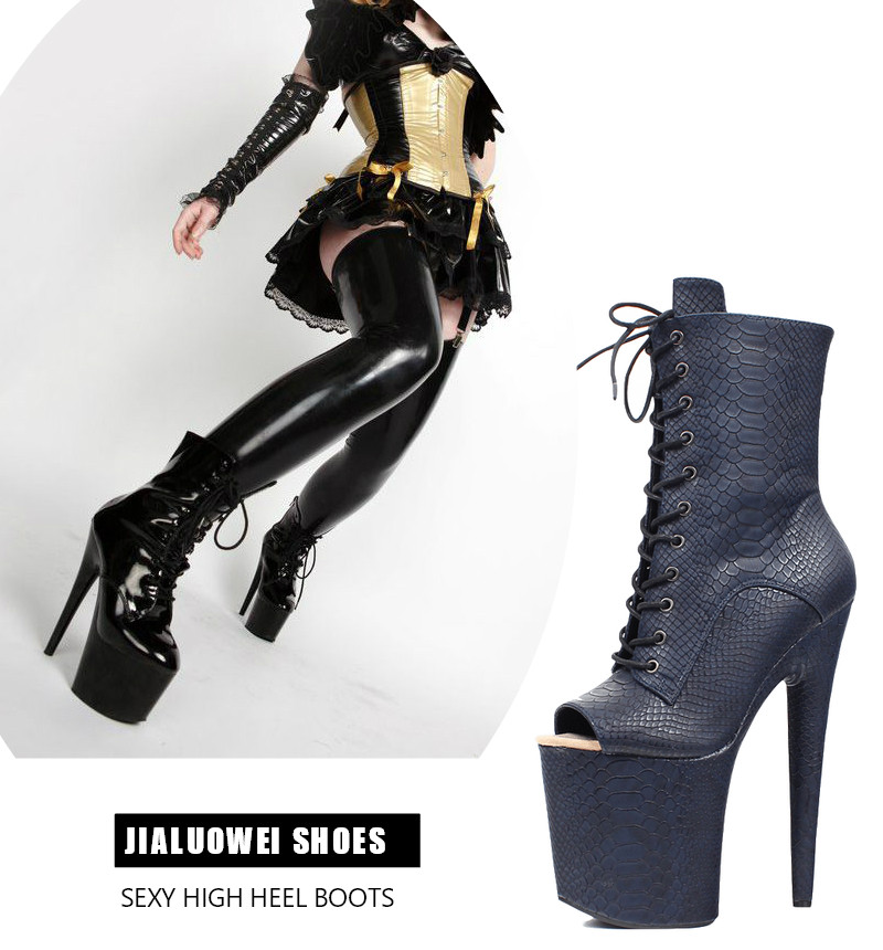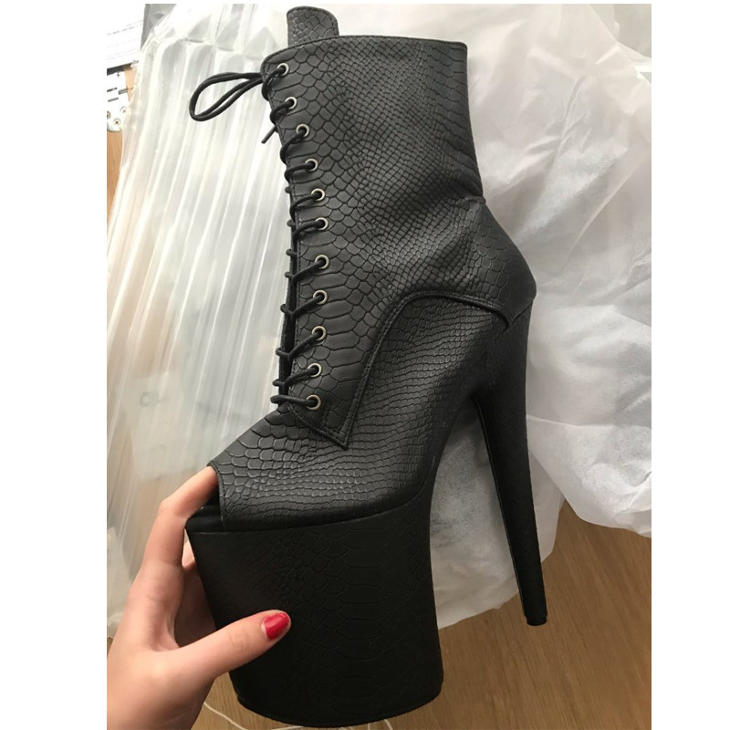 Сексуальные короткие сапоги с низким вырезом на шнуровке «рыбий рот», ультравысокие каблуки 20 см, лакированные туфли на платформе, туфли на шпильке для ночного клуба, танцевальные туфли большого размера