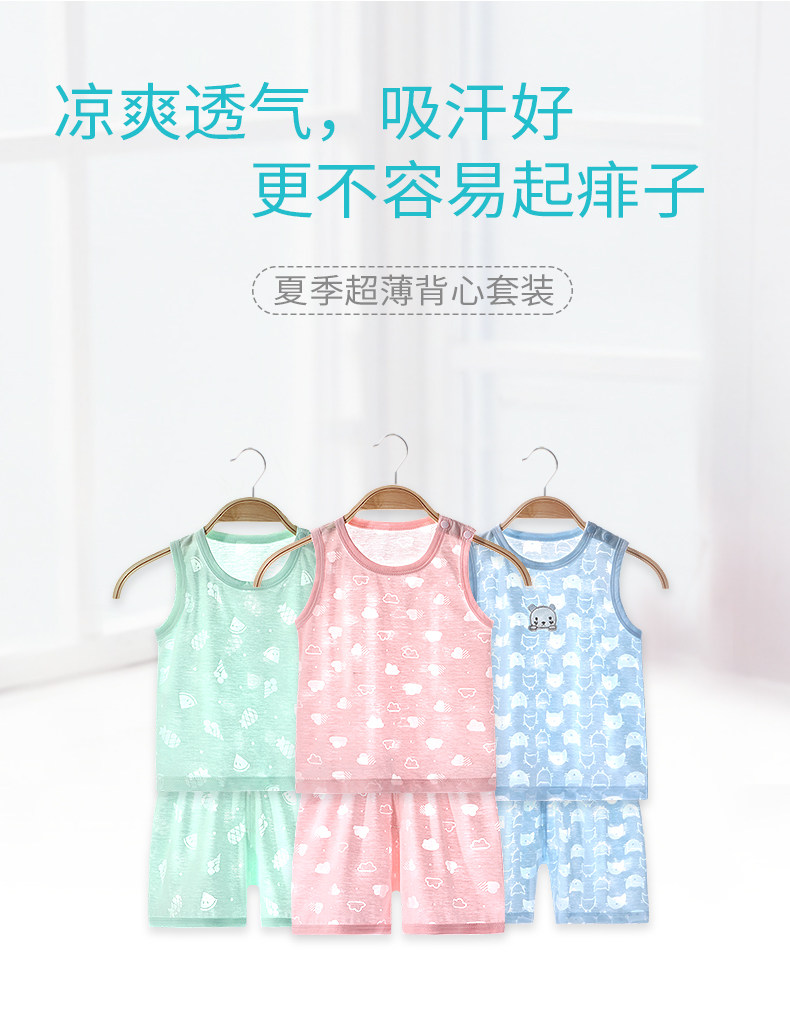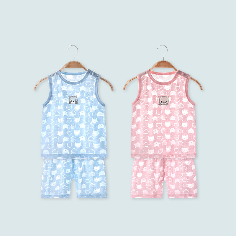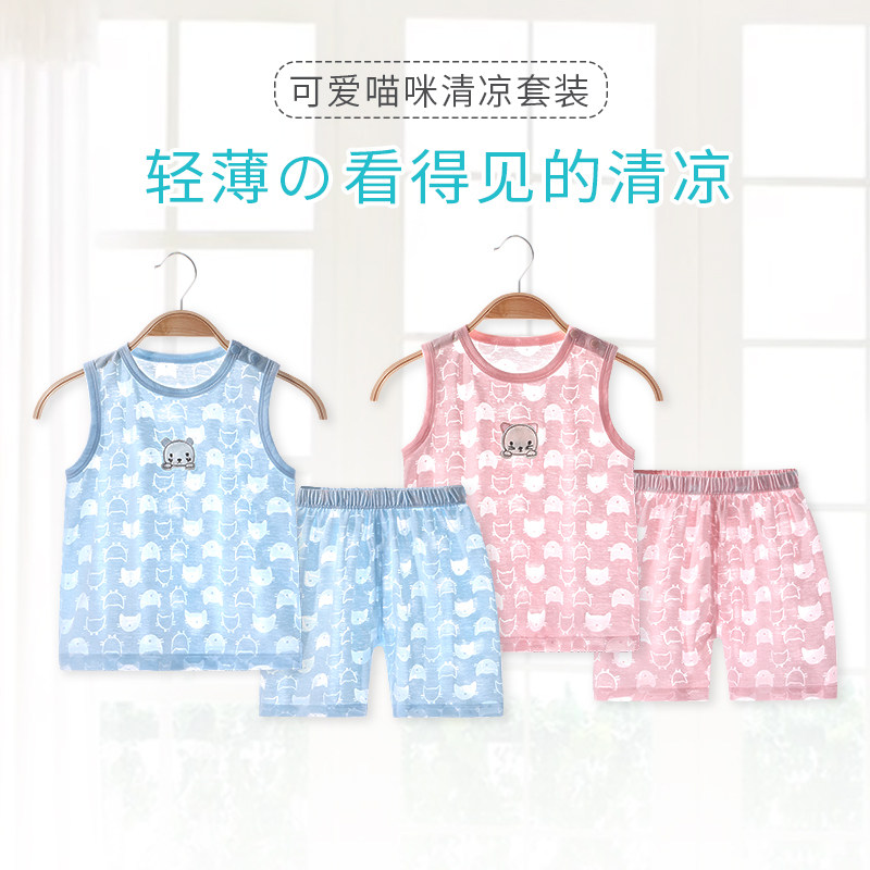 Детская летняя ультратонкая тонкая пижама, детский жилет подходит для мужчин и женщин для девочек, комплект, домашняя одежда, 1-3 лет
