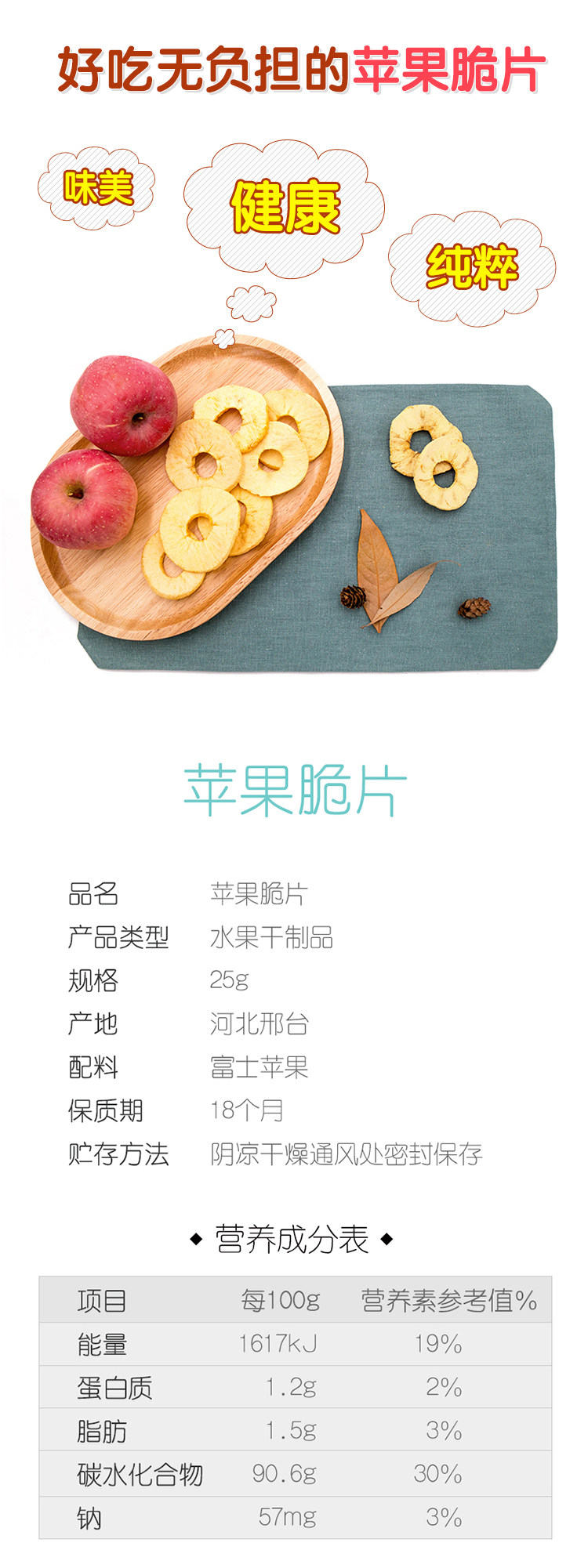 Оценка папы обезвоженного яблока Crispy Apple 25 г/сумка одна сумка = 3 яблока