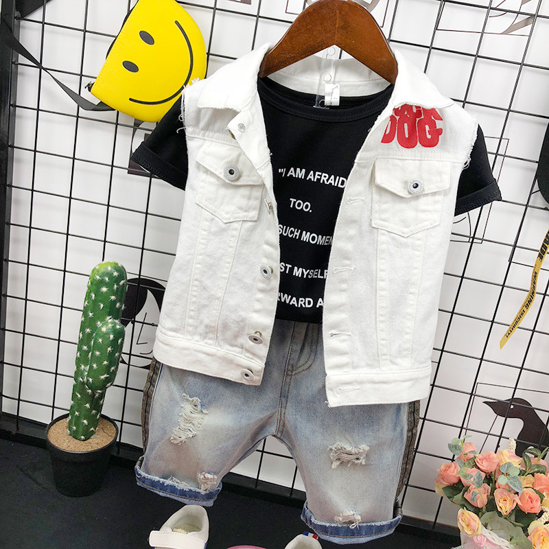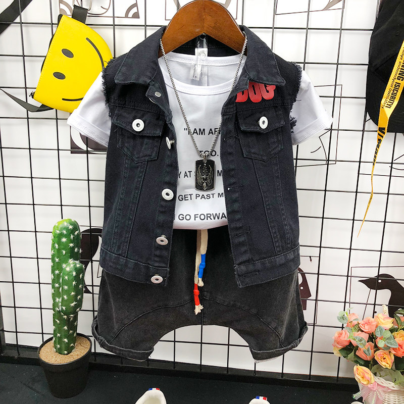 Детская летняя одежда, джинсовый жилет для мальчиков без рукавов, детский комплект, коллекция 2023, в корейском стиле, 3-5-7 лет