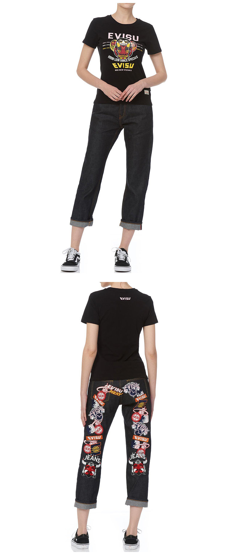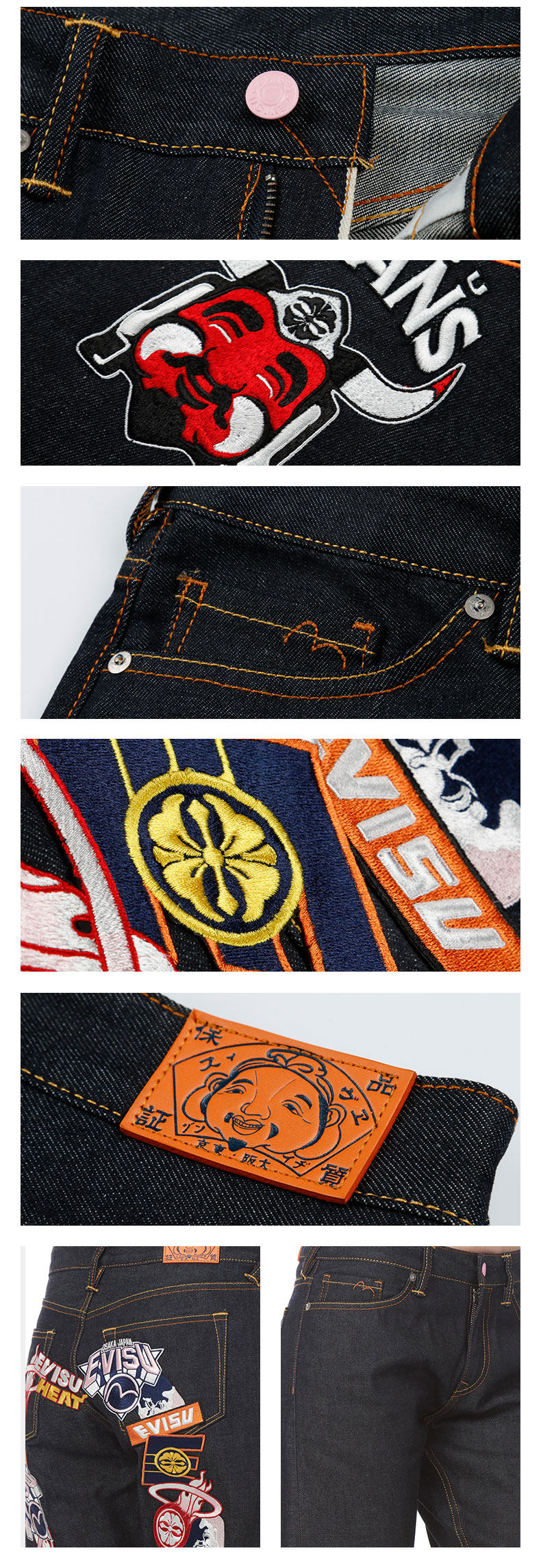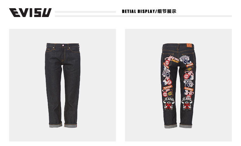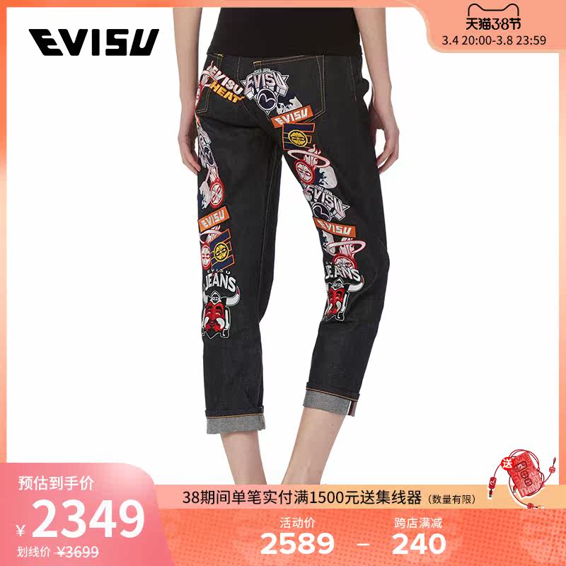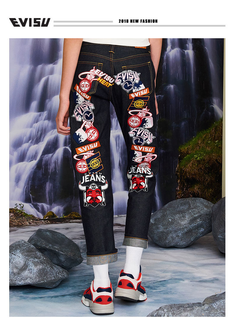 Evisu 19ss Ms. M Значок вышита джинсы 1ESHTW9JE928BF