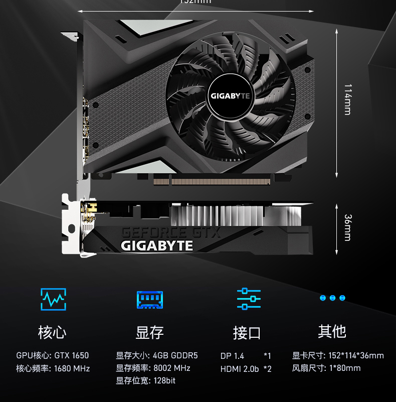 Gigabyte GTX1650 Gaming OC/WF2OC/IXOC 4G Desktop Computer Console Console Unscake Card