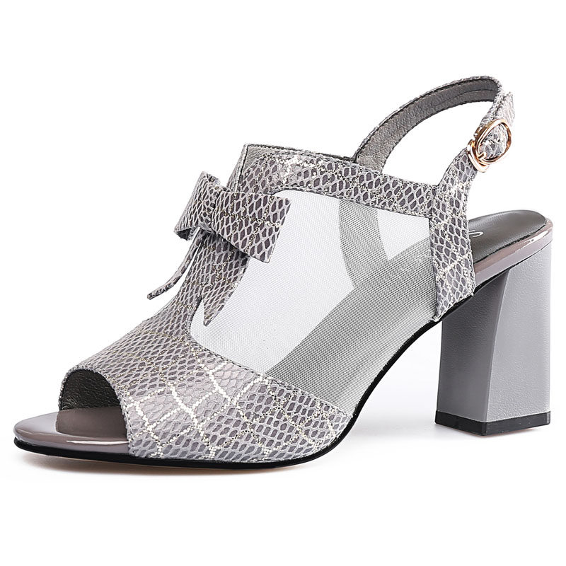 Сетчатые сандалии, летняя универсальная модная обувь на высоком каблуке с бантиком, сезон 2021
