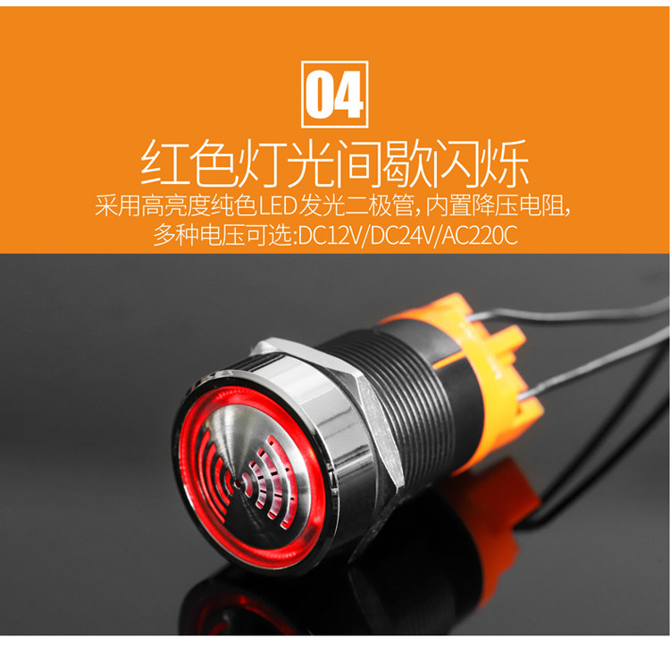 Металлическая мигающая красная светящаяся сигнализация из нержавеющей стали, 22мм, 12v